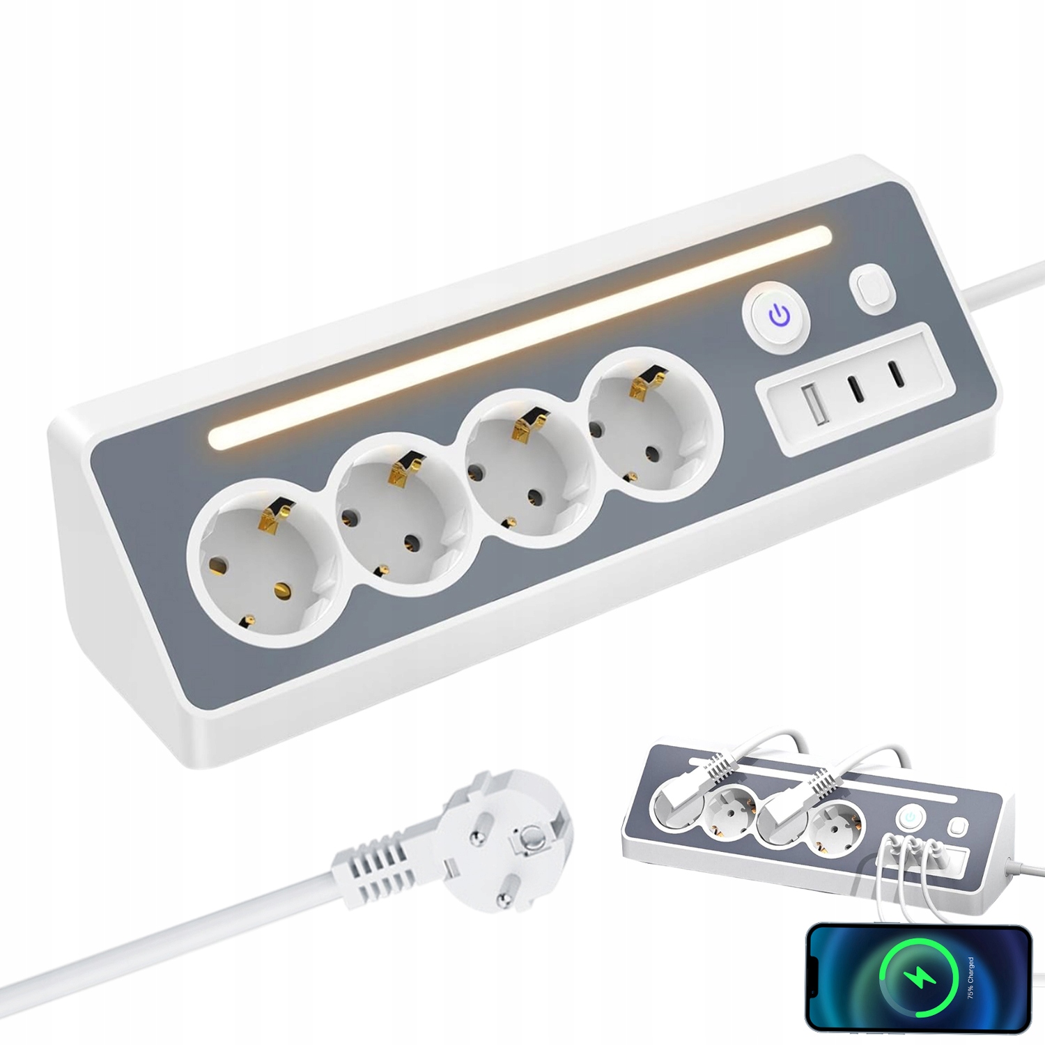 РОЗЕТКА КУТОВА МЕБЛЕВА КУХОННА ПОДОВЖУВАЧ НАБЛАТНА З USB 2x TYPE-C LED