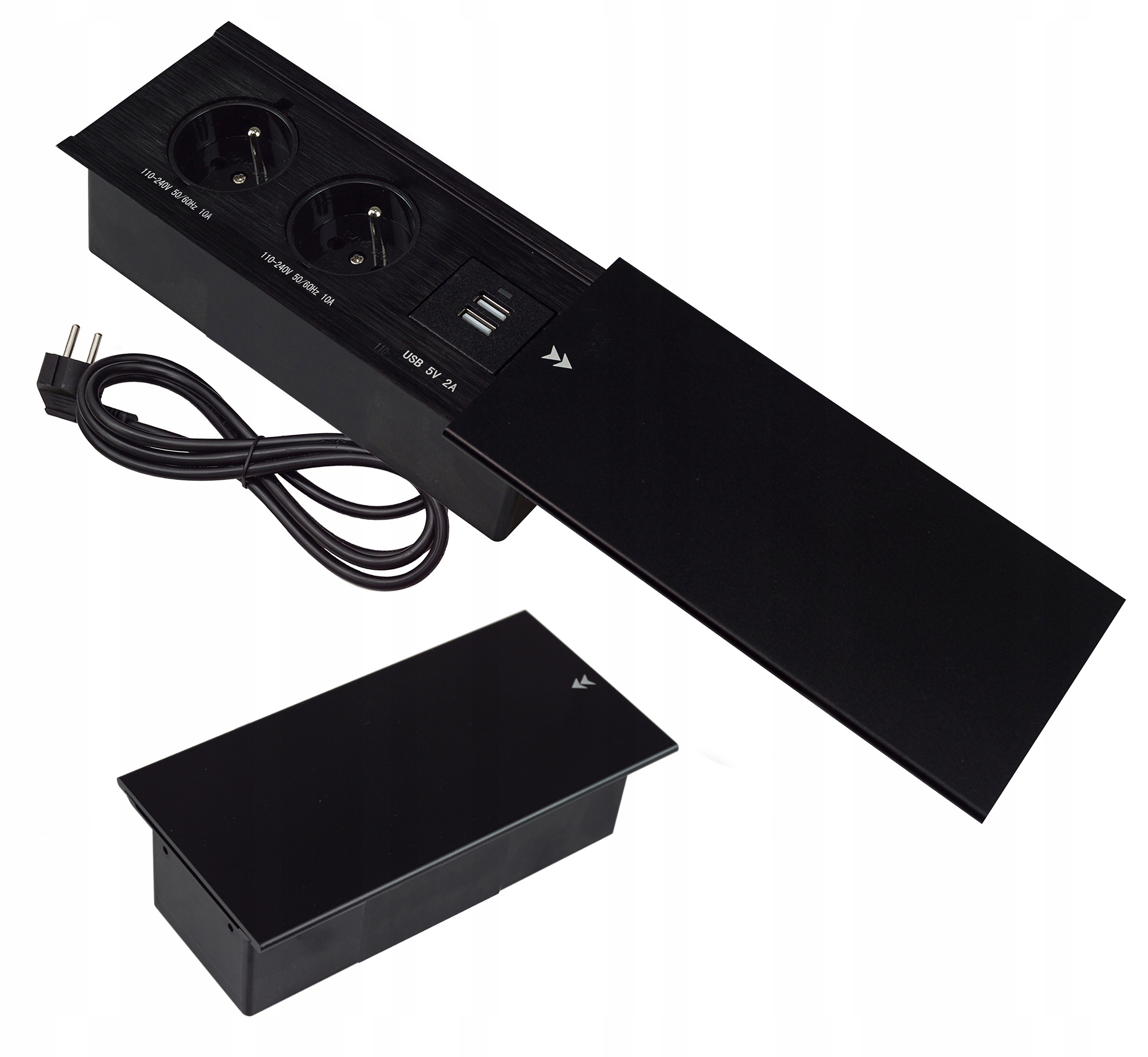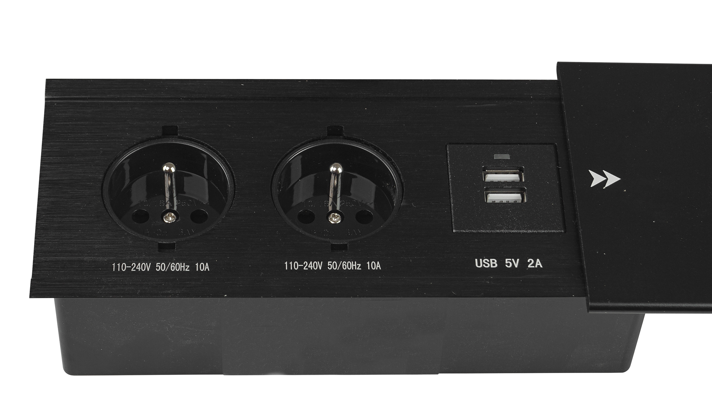 РОЗЕТКА МЕБЛЕВА НА СТІЛЬНИЦІ, ВИСУВНА, РОЗСУВНА, ЧОРНА 2 USB РОЗЕТКИ