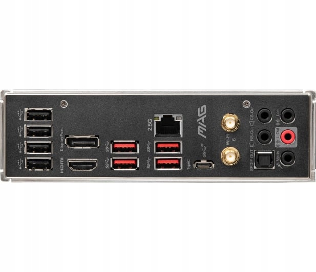 - Зовнішні роз'єми: HDMI - 1 шт.; DisplayPort - 1 шт.; RJ45 (LAN) 2,5 Гбіт/с - 1 шт.; USB Type-C - 1 шт.; USB 3.2 Gen. 2 - 4 шт.; USB 2.0 - 4 шт.; Аудіороз'єм - 5 шт.; S/PDIF - 1 шт.; Антенний роз’єм Wi-Fi – 2 шт.