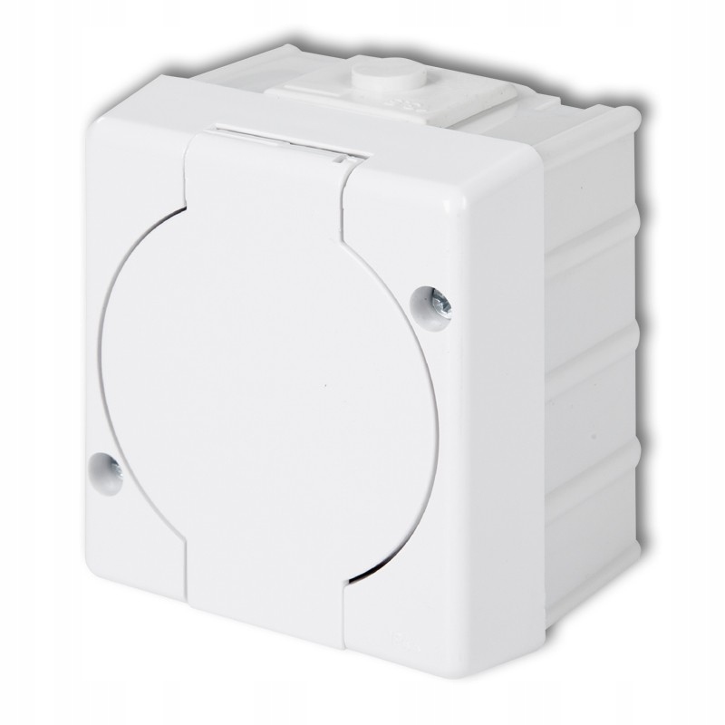 Одинична розетка із заземленням, накладна герметична біла GHS-1 Karlik Senior IP44