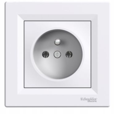 Розетка одинарна із заземленням, біла, серія Asfora, бренд Schneider Electric, каталожний номер EPH2800121. Довгі і міцні захвати утримуються вертикально металевими напрямними, що полегшує установку і підвищує безпеку при установці механізму в монтажну коробку. Клеми в силових розетках чітко позначені та розташовані в одну лінію, що значно полегшує розташування підключених кабелів перед монтажем розетки в монтажній коробці (зменшується ефект натягу кабелю). Компактна і міцна конструкція механізму мінімізує ризик випадкового контакту з елементами, що знаходяться під напругою, і запобігає випаданню елементів навіть при повністю відкручених гвинтах клем. Крім того, міцна монтажна рама з оцинкованого металу має виїмки для полегшення позиціонування. Виріб можна встановити в кілька рам. Asfora - це повний асортимент високоякісних роз'ємів і розеток елегантної форми і широкого функціоналу. Випускається в 6 кольорах: білий, кремовий, алюміній, сталь, коричневий і антрацит, що дозволяє створити 36 колірних комбінацій. Проста форма, широкий асортимент, швидкий і легкий монтаж – переваги серії Asfora.