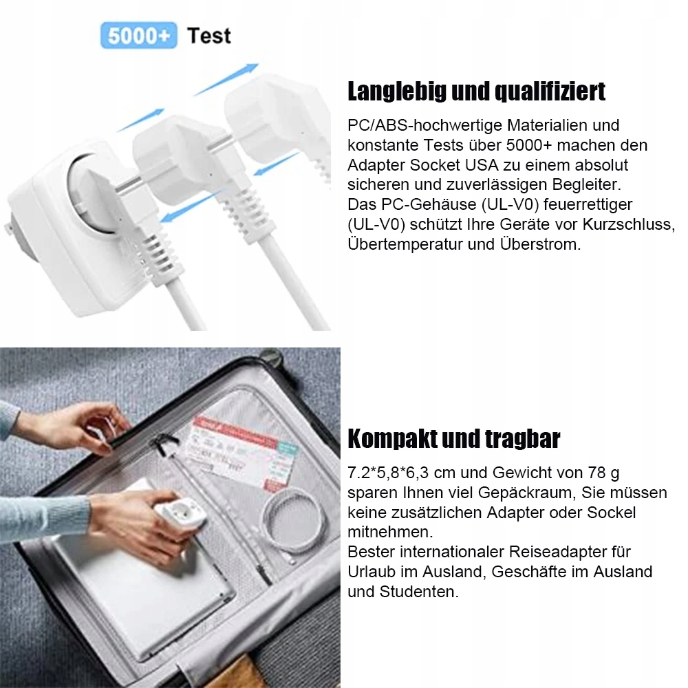 - PC/ABS Високоякісні матеріали та безперервне тестування понад 5000 роблять розетку адаптера США абсолютно безпечним і надійним компаньйоном. li>