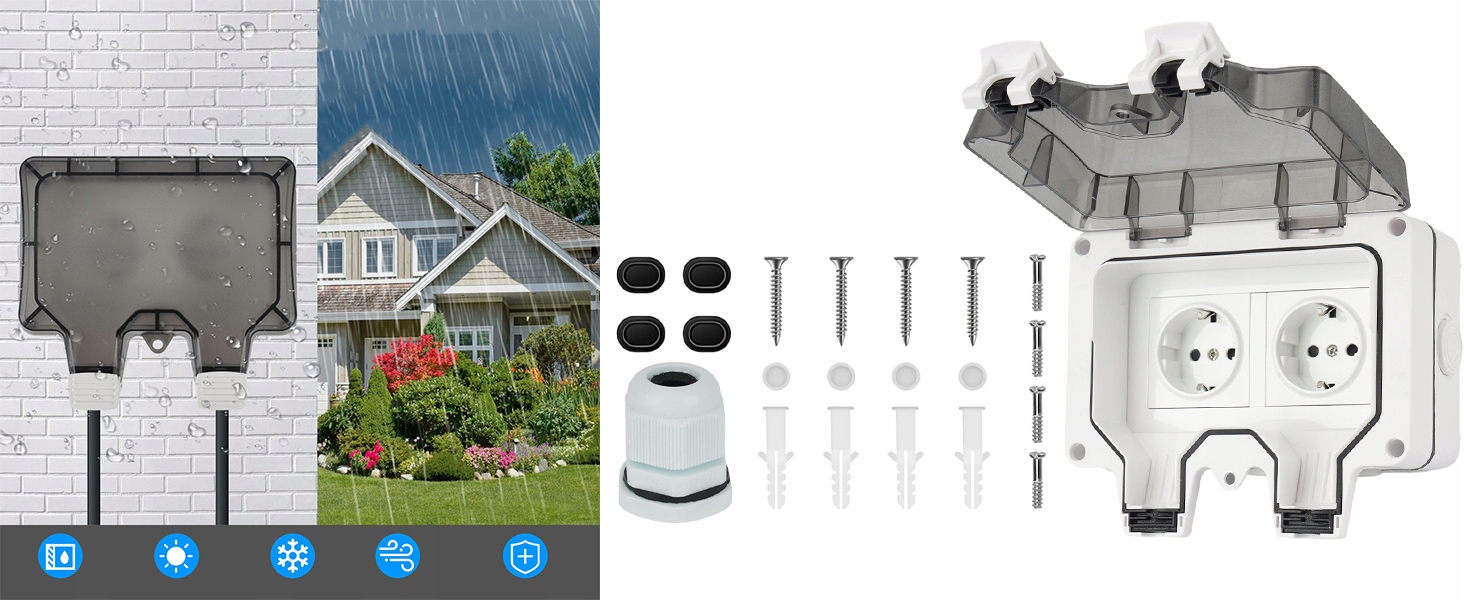 ▶️Універсальне використання на відкритому повітрі:Ця міцна розетка для зовнішнього використання ідеально підходить для різноманітних застосувань поза приміщеннями, включаючи сади, майстерні, подвір’я, тераси та гаражі. Забезпечує безпечне та надійне живлення, підвищуючи зручність і функціональність.