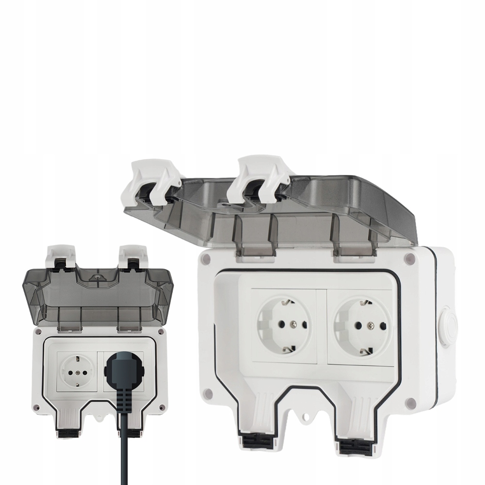РОЗЕТКА ПОДВІЙНА ГЕРМЕТИЧНА, ПОВЕРХНЕВИЙ МОНТАЖ, ЗОВНІШНЯ, ВОЛОЗАЩИТА IP65 220V