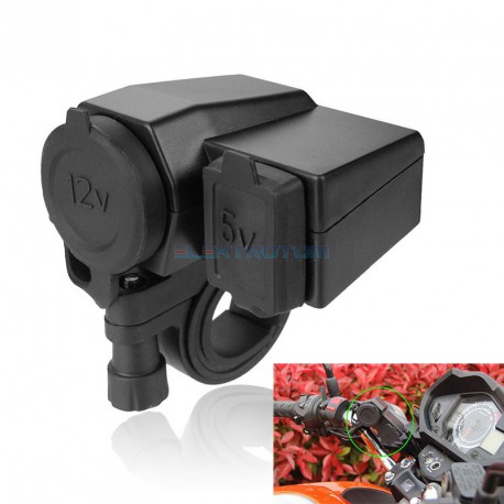 12V + USB 2.1A Гніздо прикурювача для мотоцикла/скутера