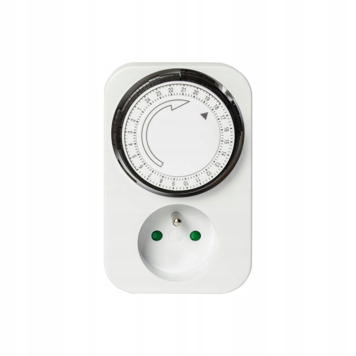 Аналоговий таймер використовується для автоматичного включення і вимкнення електроприладів, підключених до розетки, в цілодобовому режимі. Дозволяє запрограмувати час включення і виключення електронного обладнання. Програматор працює в добовому циклі, мінімальний час налаштування між включенням і вимиканням становить 15 хвилин. Завдяки цьому пристрою ви можете включити, наприклад, світло в акваріумі або пральну машину, коли вас немає вдома. Білий колір пристрою робить його дуже вдалим для білих стін.