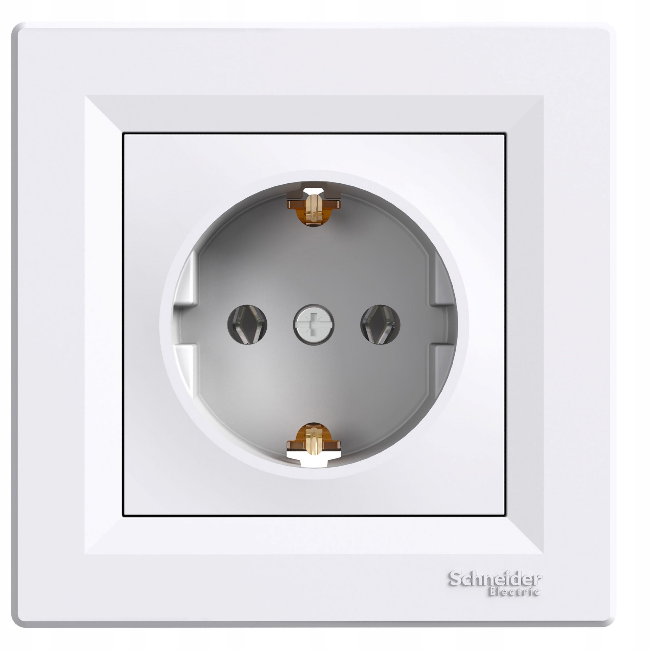 Розетка SCHUKO одинарна із заземленням, біла, серія Asfora, бренд Schneider Electric, каталожний номер EPH2900121. Довгі і міцні захвати утримуються вертикально металевими напрямними, що полегшує установку і підвищує безпеку при установці механізму в монтажну коробку. Клеми в силових розетках чітко позначені та розташовані в одну лінію, що значно полегшує розташування підключених кабелів перед монтажем розетки в монтажній коробці (зменшується ефект натягу кабелю). Компактна і міцна конструкція механізму мінімізує ризик випадкового контакту з елементами, що знаходяться під напругою, і запобігає випаданню елементів навіть при повністю відкручених гвинтах клем. Крім того, міцна монтажна рама з оцинкованого металу має виїмки для полегшення позиціонування. Виріб можна встановити в кілька рам. Asfora - це повний асортимент високоякісних роз'ємів і розеток елегантної форми і широкого функціоналу. Випускається в 6 кольорах: білий, кремовий, алюміній, сталь, коричневий і антрацит, що дозволяє створити 36 колірних комбінацій. Проста форма, широкий асортимент, швидкий і легкий монтаж – переваги серії Asfora.