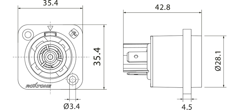 Розетка щитова POWERCON 20A 3P Roxtone RAC3FPWP IP65
