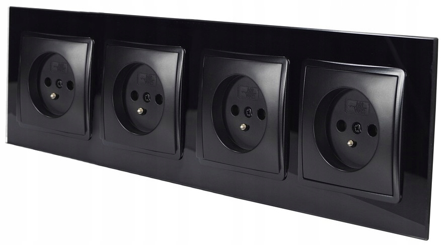 - Тип: Розетка 4x із заземленням, в чотирикратній скляній рамці, чорна,