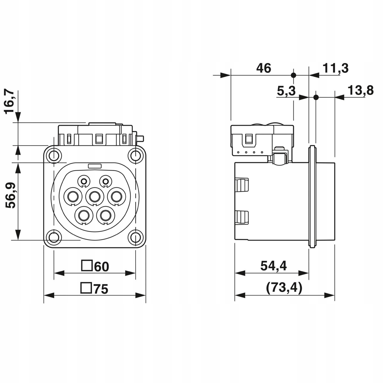 Розетка для зарядки електромобілів (EV) зі змінним струмом (AC). Виготовлений з матеріалів найвищої якості. Потужність зарядки макс. 26,6 кВт (3 фази). Розетка адаптована для зарядки 2 типу.