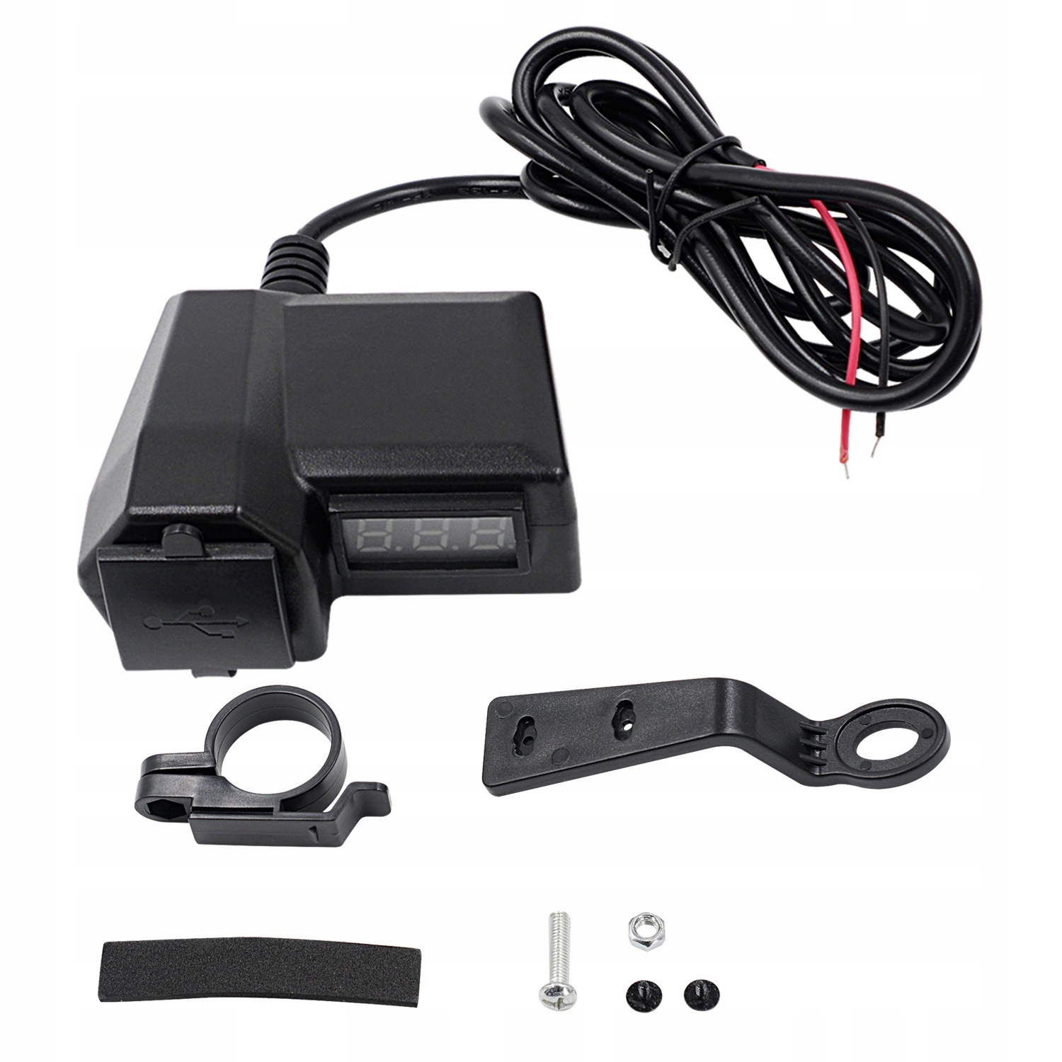 ВОДОСТІЙКИЙ ЗАРЯДНИЙ ПРИСТРІЙ З ВОЛЬТМЕТРОМ 2xUSB ДЛЯ МОТОЦИКЛА/СКУТЕРА