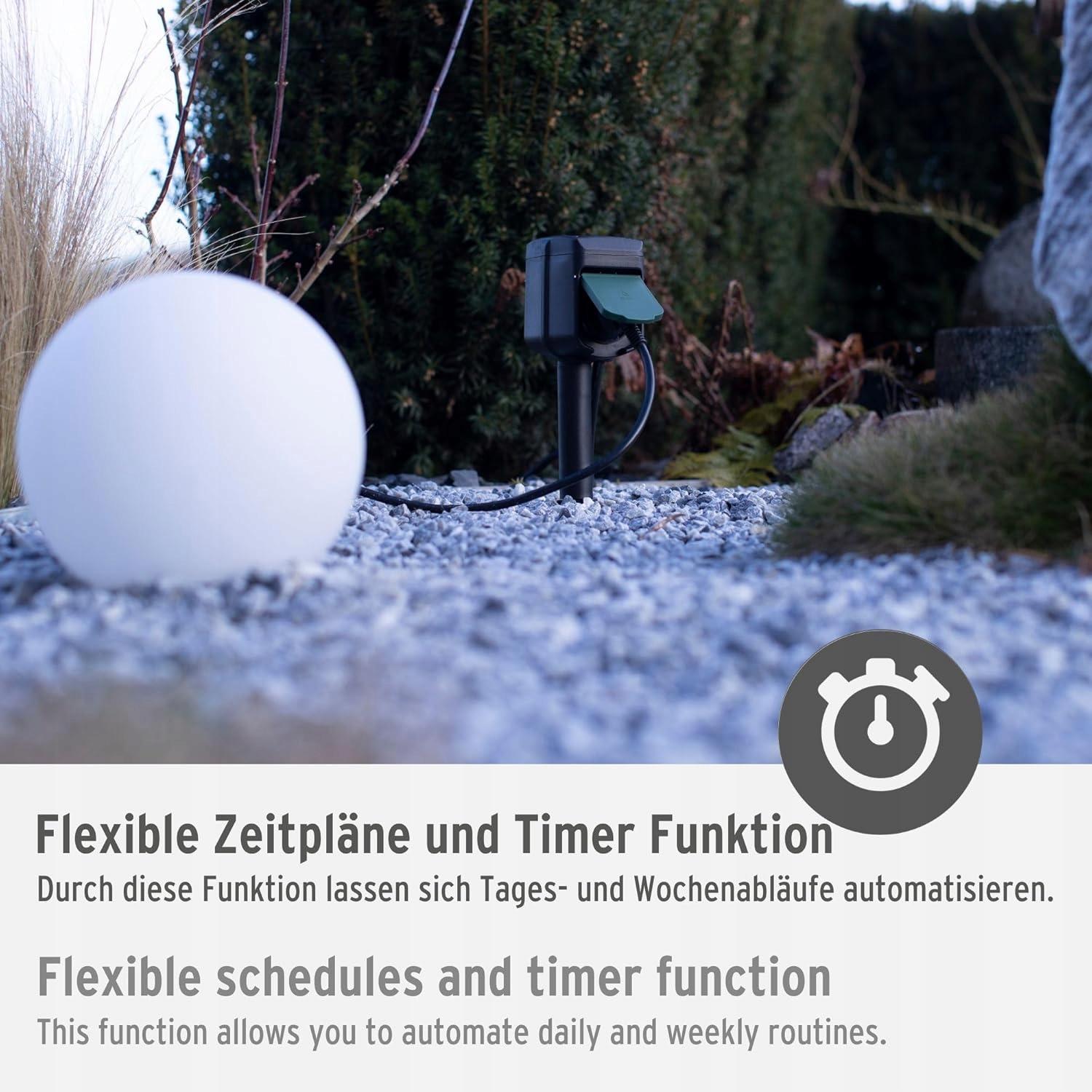 Зовнішня розетка підходить для постійного використання на вулиці та ідеально підходить для підключення садових вогнів, різдвяних вогнів, різдвяних вогнів, радіо, басейну, електричного гриля та багато іншого. Зовнішня розетка із заземленням сумісна з маршрутизаторами будь-якої марки та не потребує концентратора (під час підключення виберіть діапазон 2,4 ГГц).