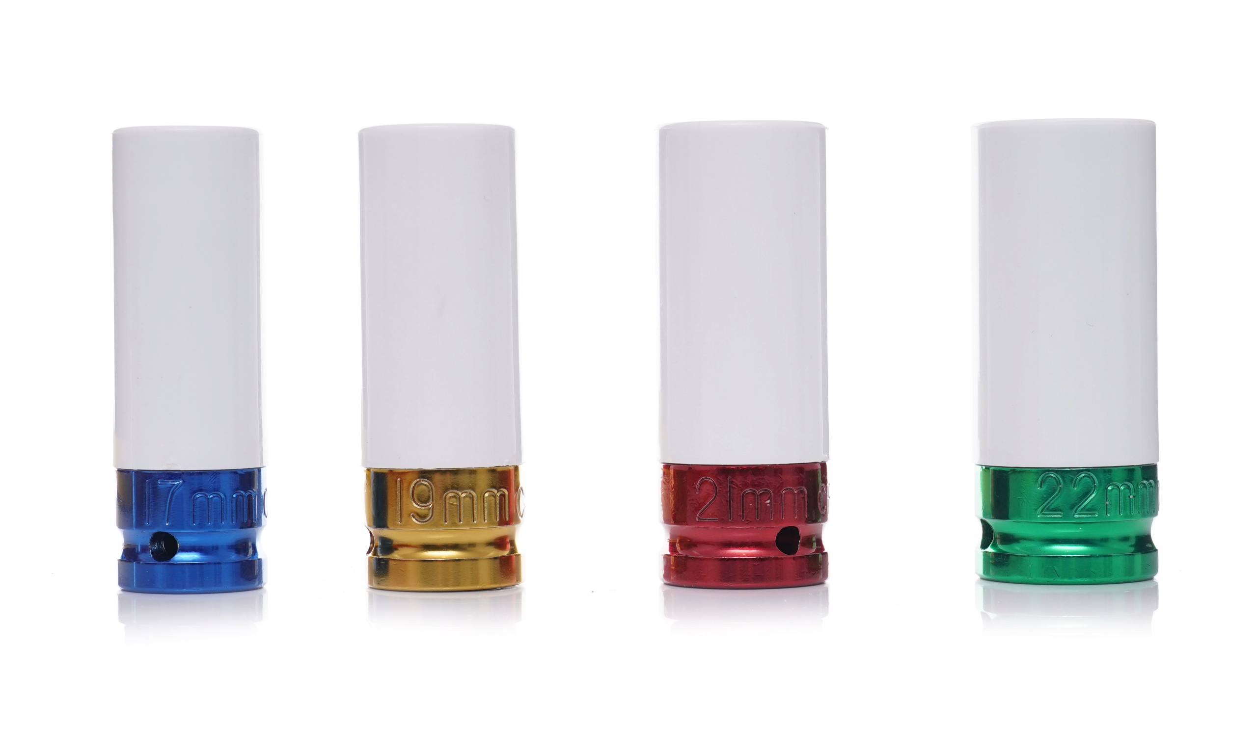 Наконечники гнізд покриті хромованим покриттям різних кольорів для легкого визначення розміру. Крім того, все це упаковано у зручній валізі