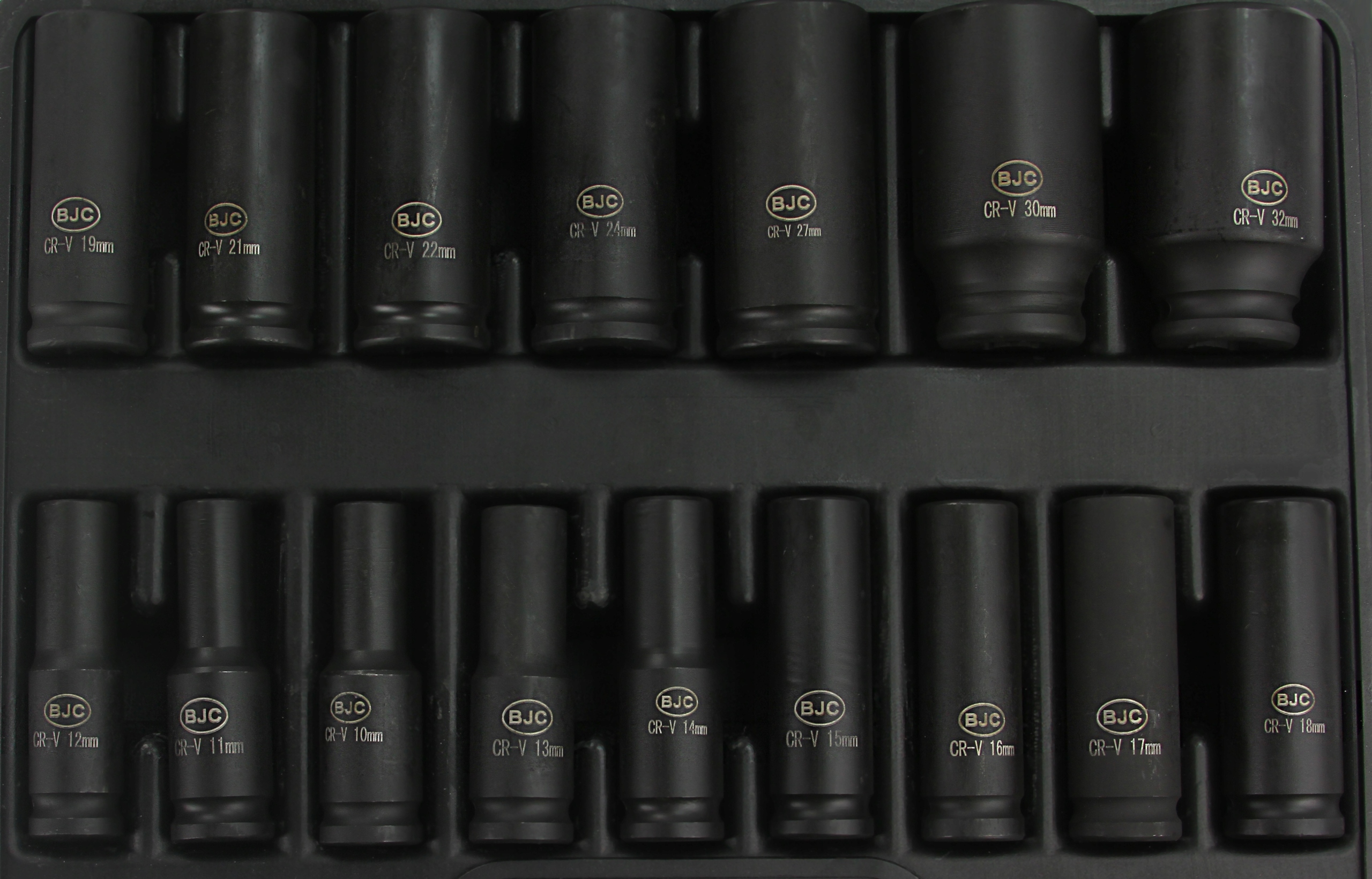 довгі ударні головки 1/2": 10, 11, 12, 13, 14, 15, 16, 17, 18, 19, 21, 22, 24, 27 , 30, 32 мм