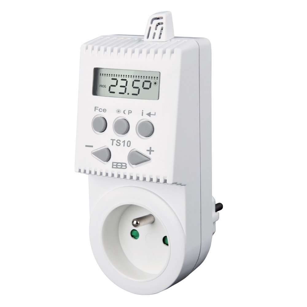ТЕРМОСТАТ ELEKTROBOCK TS10 - простий розетковий терморегулятор для електронагрівальних приладів з можливістю програмування температури на кожен день. Має вбудований датчик температури повітря. Використовується для інфрачервоних нагрівальних панелей та інших електрообігрівачів. Терморегулятор простий в установці. Просто підключіть термостат до розетки та вставте вилку радіатора.