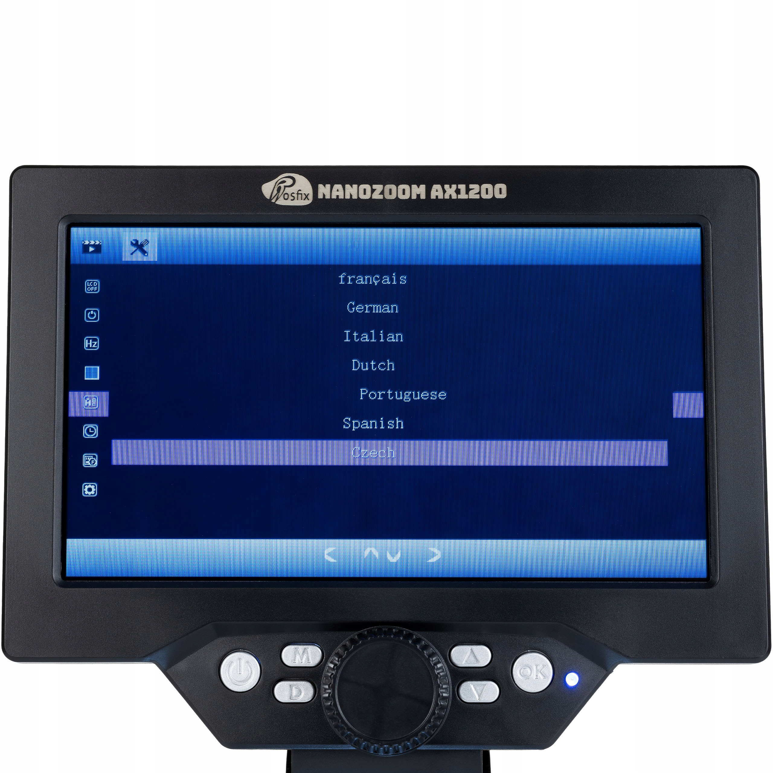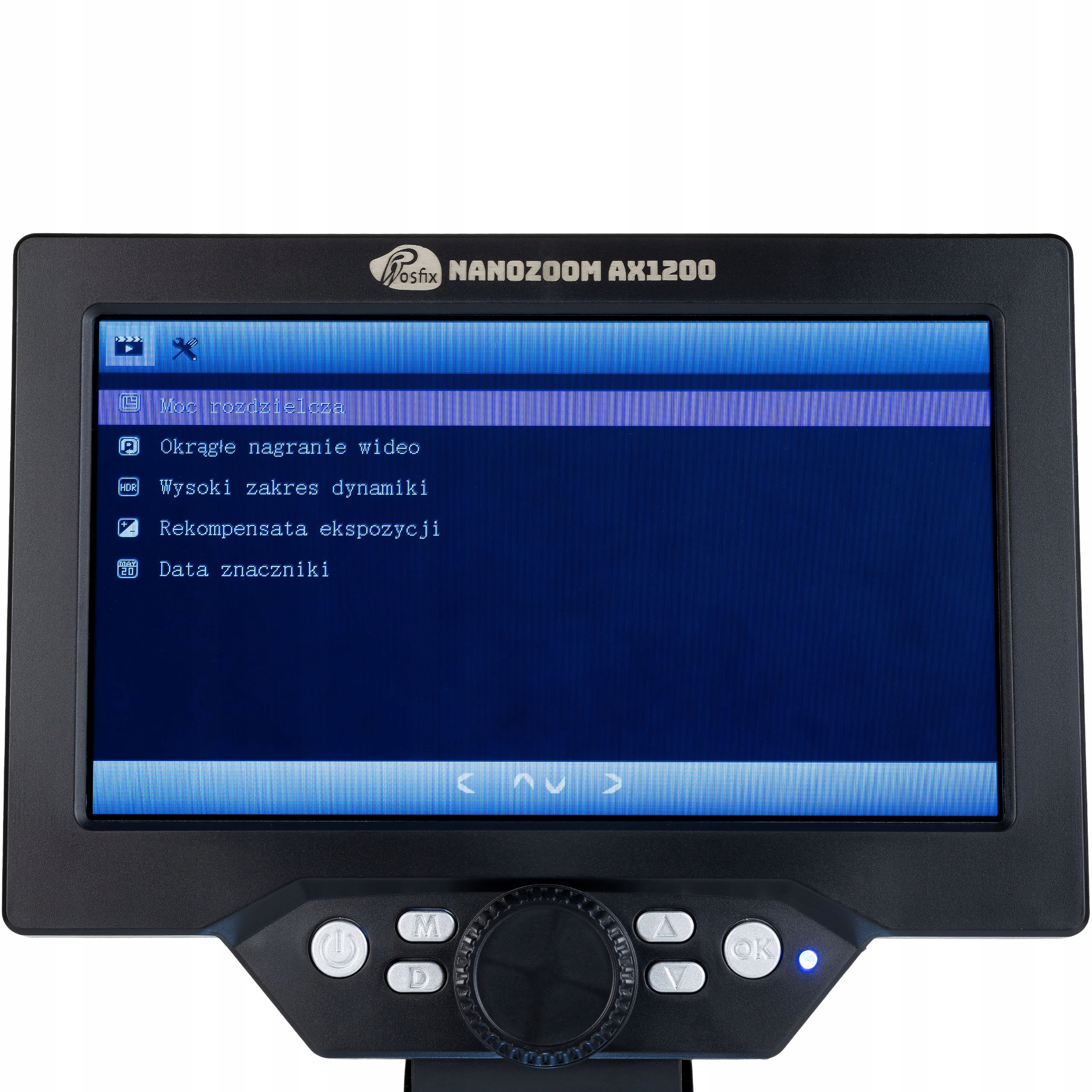 Rosfix NanoZoom AX1200 - 7" LCD цифровий мікроскоп | 12MP | 1080p Full HD | 1200x збільшення | LED | USB | microSD | Алюмінієвий штатив | Польська мова