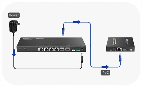 Завдяки функції PoC вам потрібно лише подати живлення на передавач. Жоден приймач не потребує додаткового живлення.