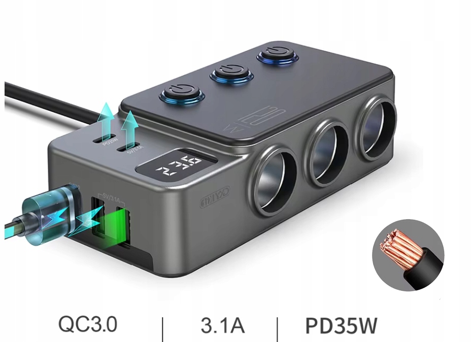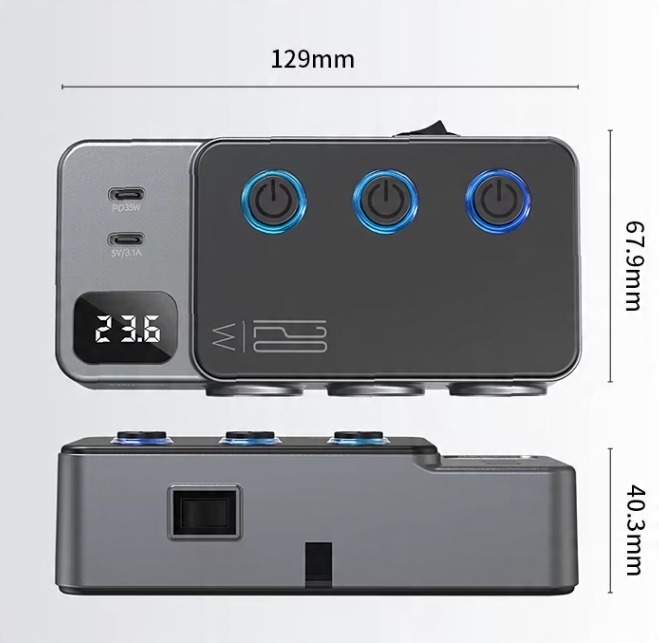 Розподільник гнізда прикурювача 12-24В USB QC PD Вольтметр 120W CYBERPUNK