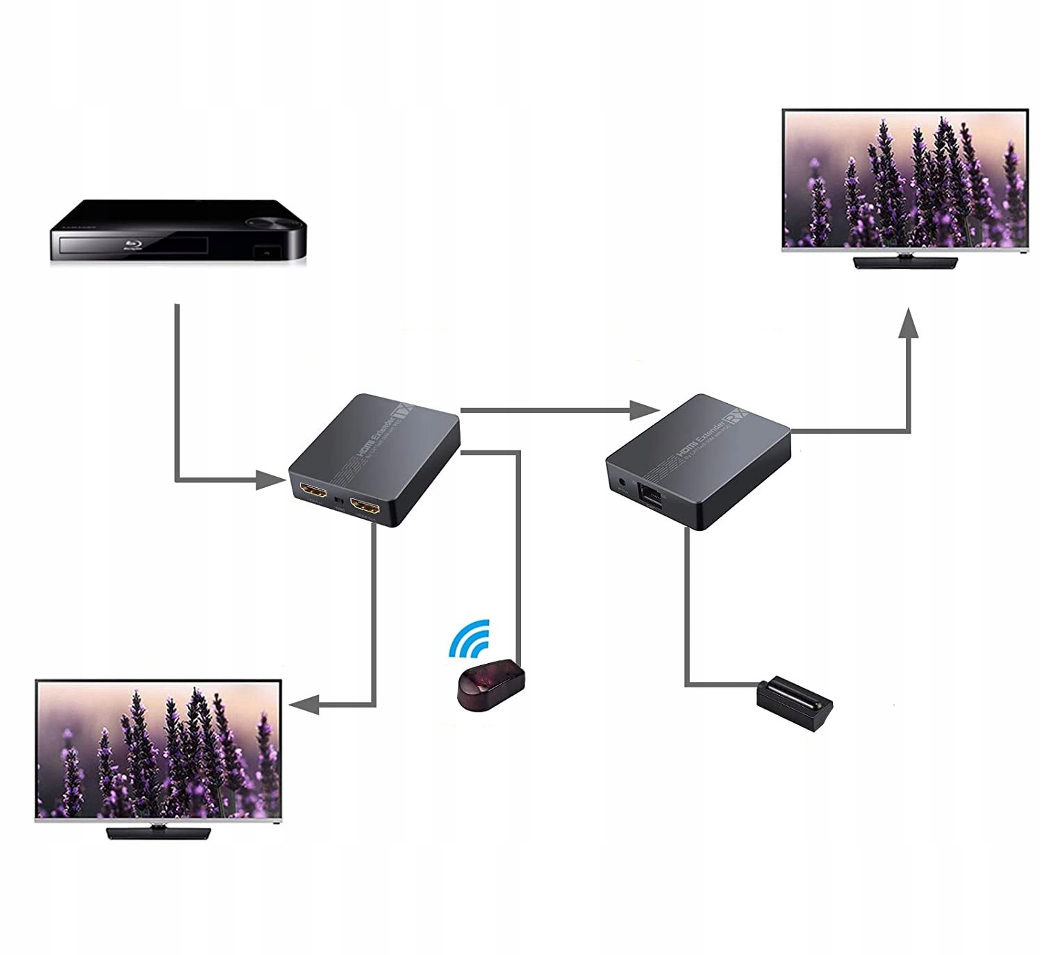 Поширює аудіо/відео та ІЧ-сигнали до 50 м і підтримує роздільна здатність HD 1080p.