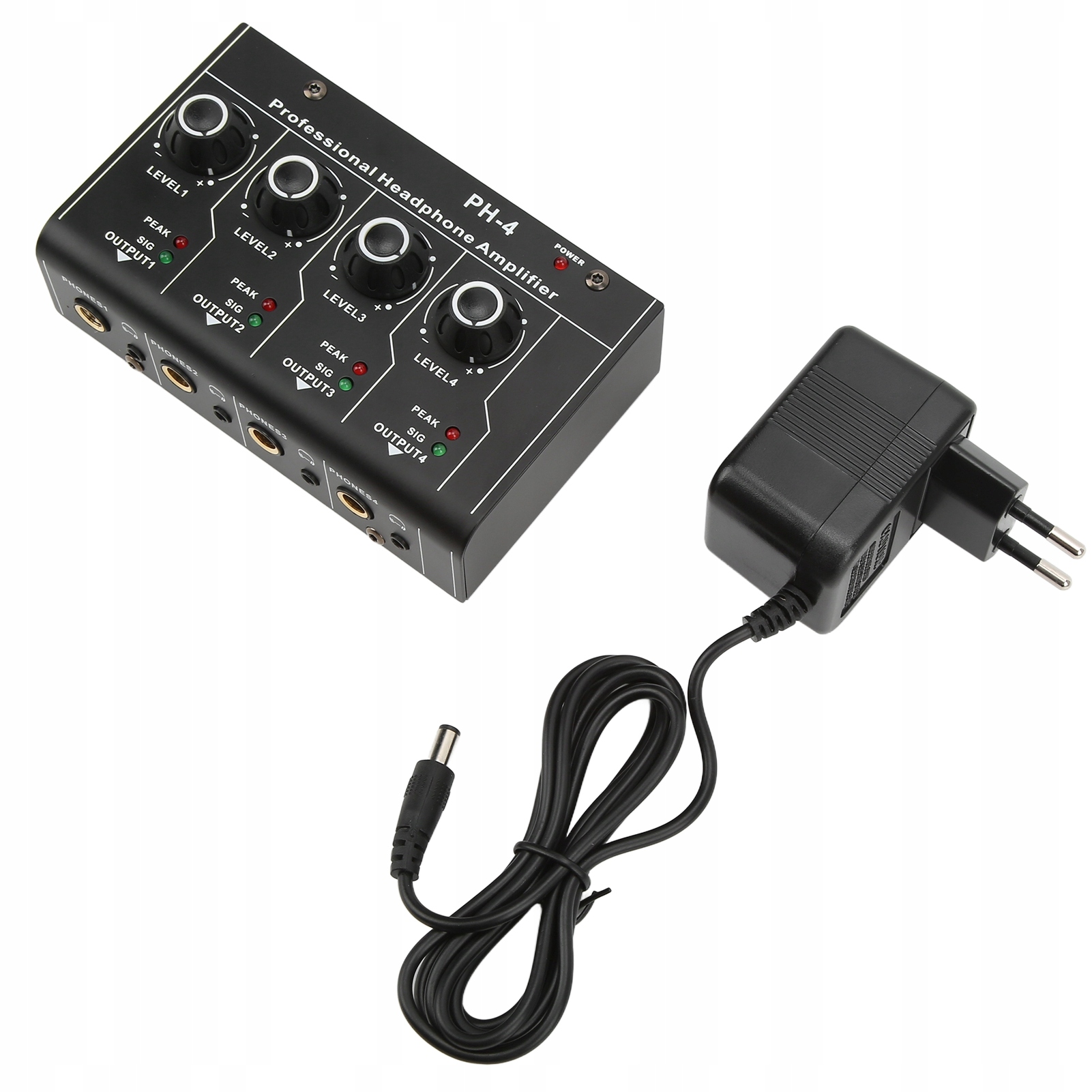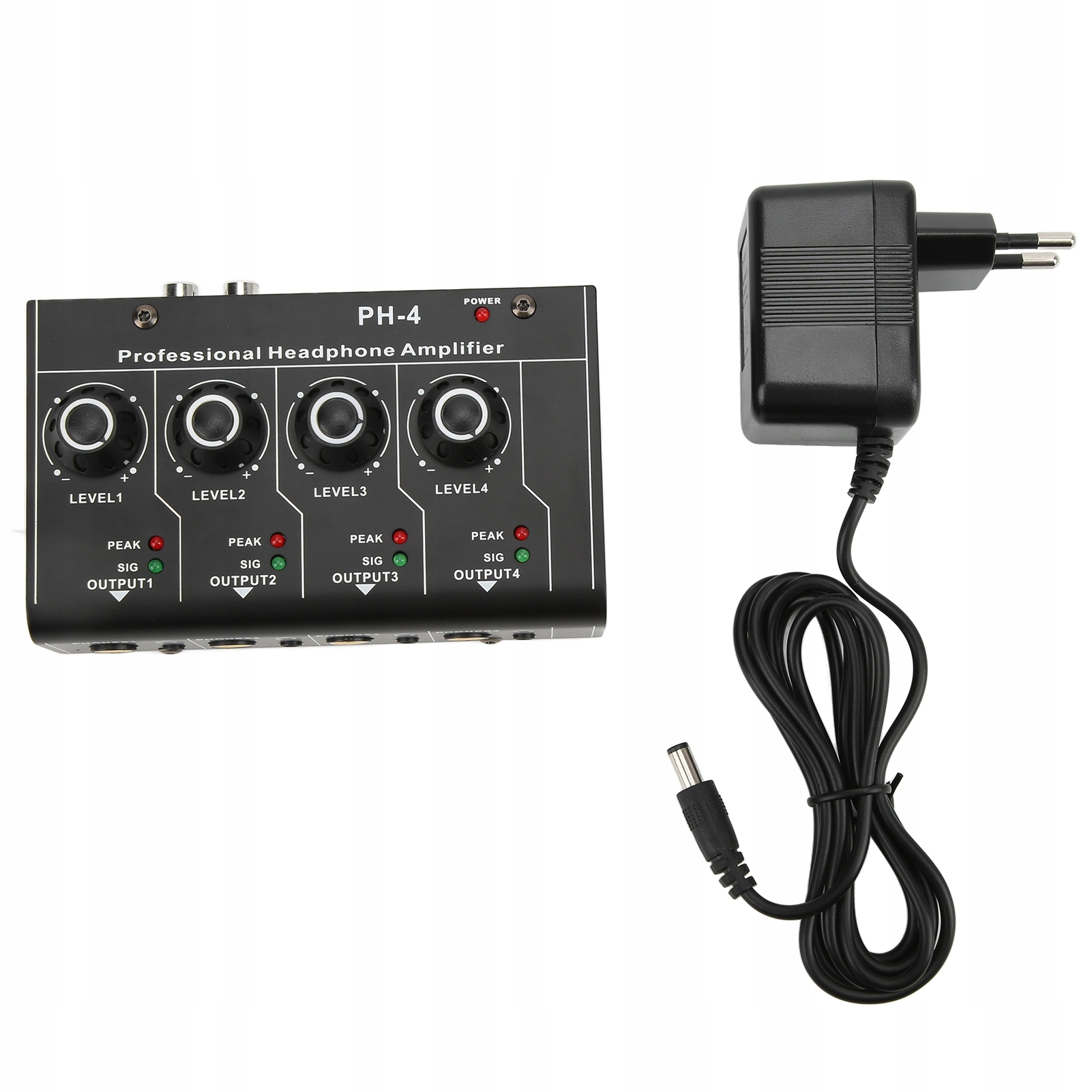 Розгалужувач підсилювача для навушників, 4-канальний стереовихід, вхід RCA, міні-перемикач, штекер ЄС 220 В змінного струму