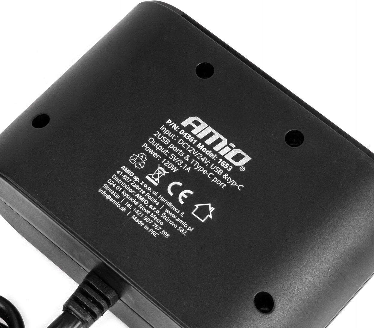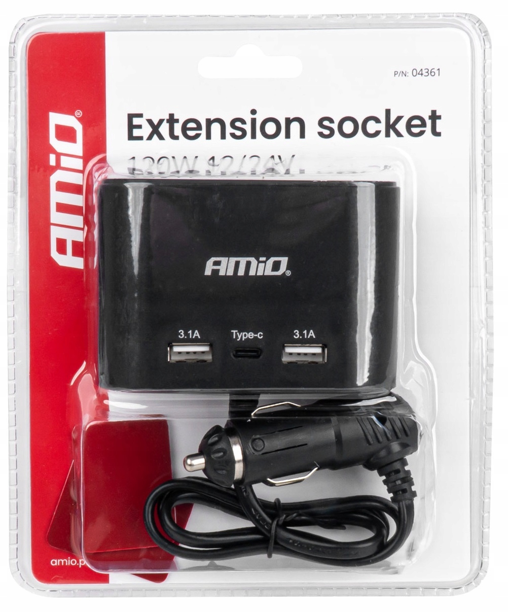 Розгалужувач розетки прикурювача з зарядним пристроєм 2x USB-A + USB-C 120 Вт 70 см
