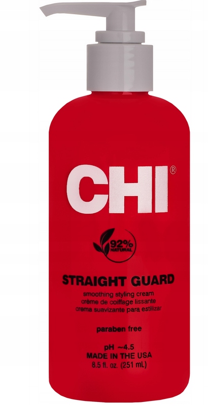 Молочко CHI Straight Guard — надійний продукт для людей, які часто випрямляють волосся та хочуть зберегти його здоровий вигляд. Легка кремоподібна формула полегшує укладку, забезпечує ковзання та захищає волосся від вологи, кучерявості та високих температур електричних приладів.