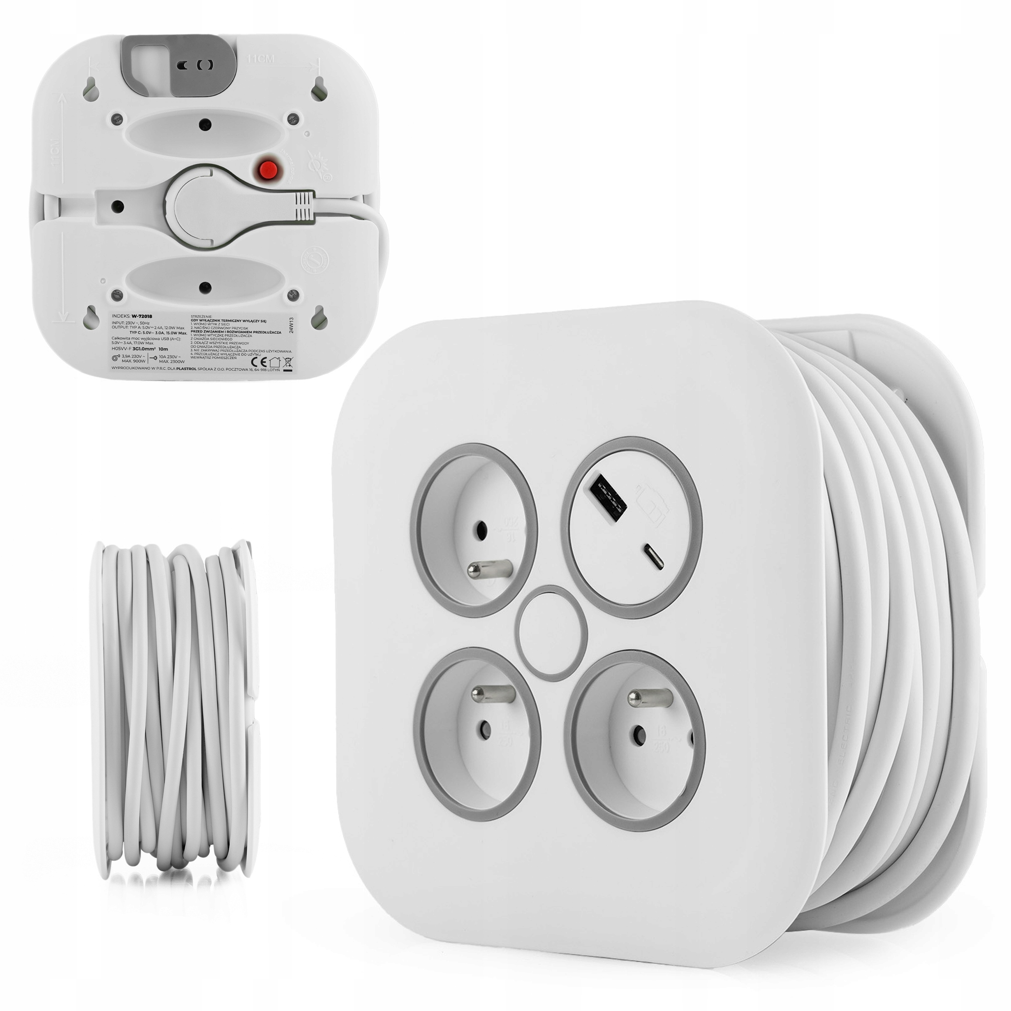 розгорнута розетка 3 розетки з заземленням 10 м + 2xusba + c ip20 patrol