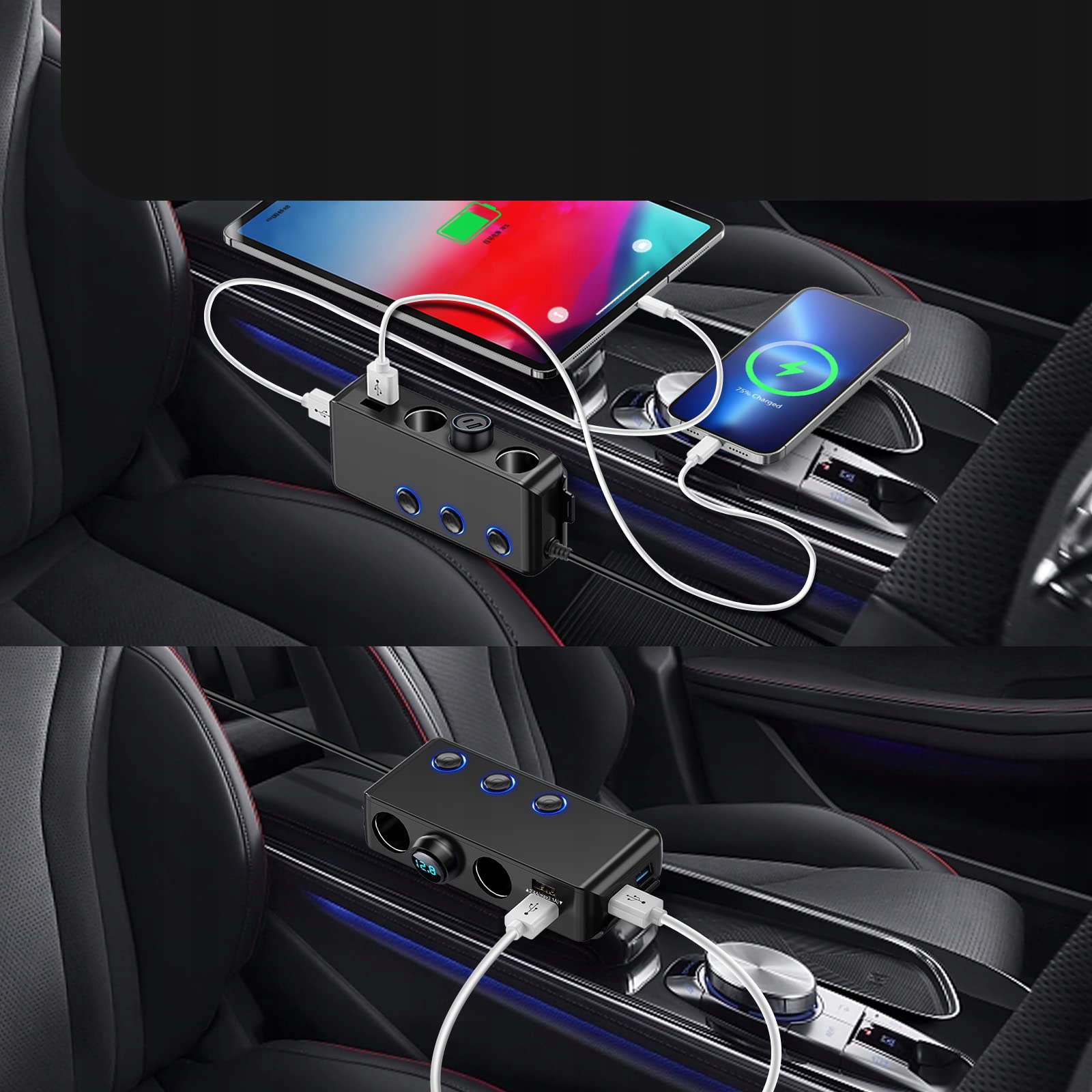 - інтегрована інтелектуальна система інтелектуально виявляє пристрій та зарядний пристрій, щоб зарядити їх з оптимальним струмом. - Розширює один легший автомобіль до трьох більш легких розетків (з незалежними комутаторами) та чотирма портами USB.
