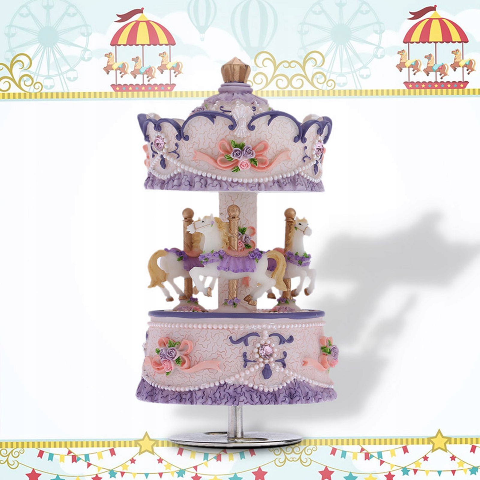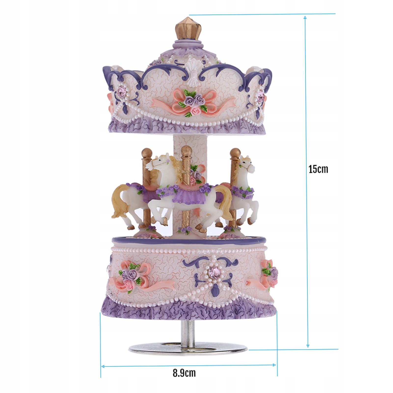 - Синтетична смола. Романтична карусельна музична коробка. Прекрасний дизайн, хороша майстерність різьблення. Закінчіть, щоб вести музику миші.