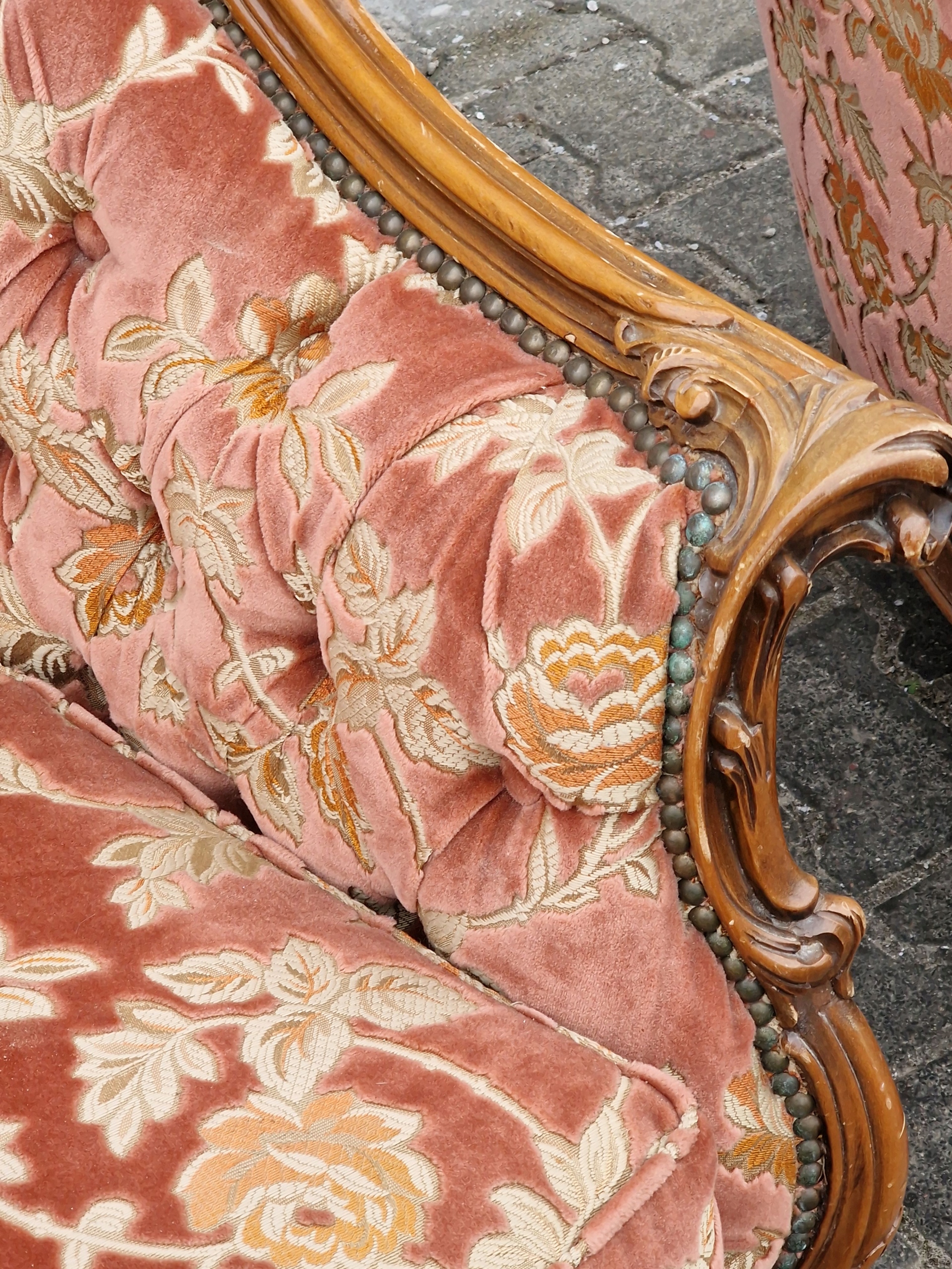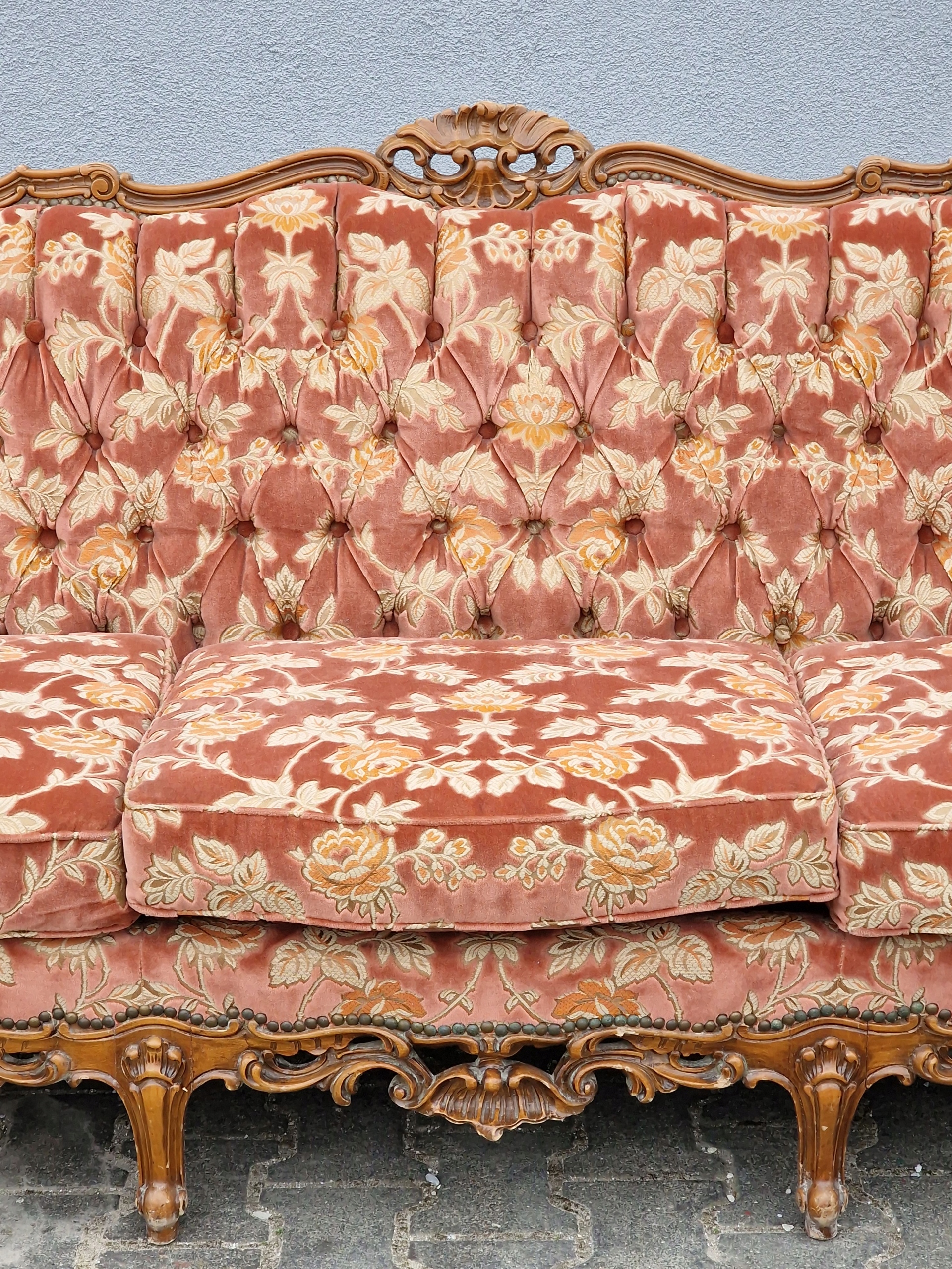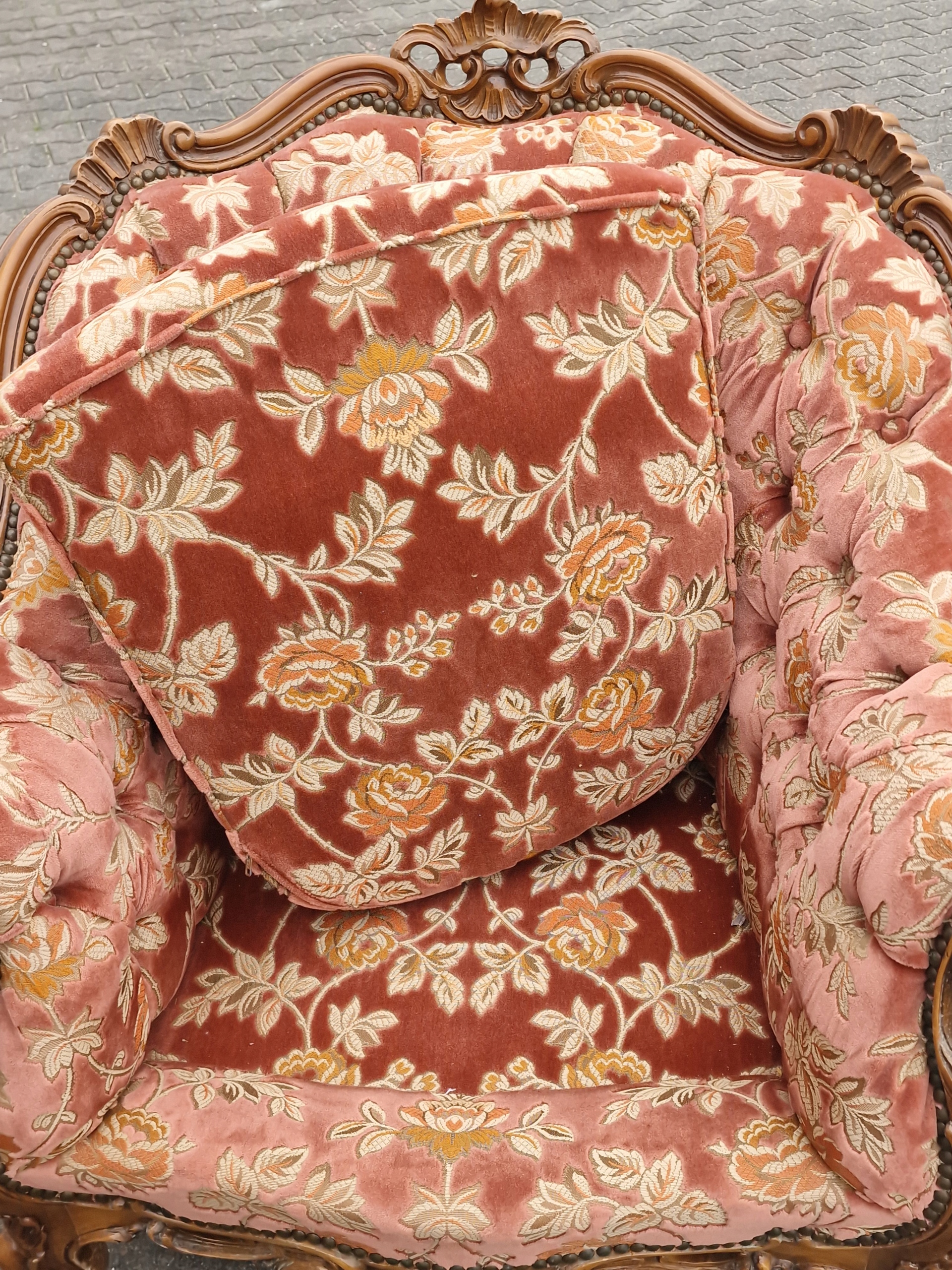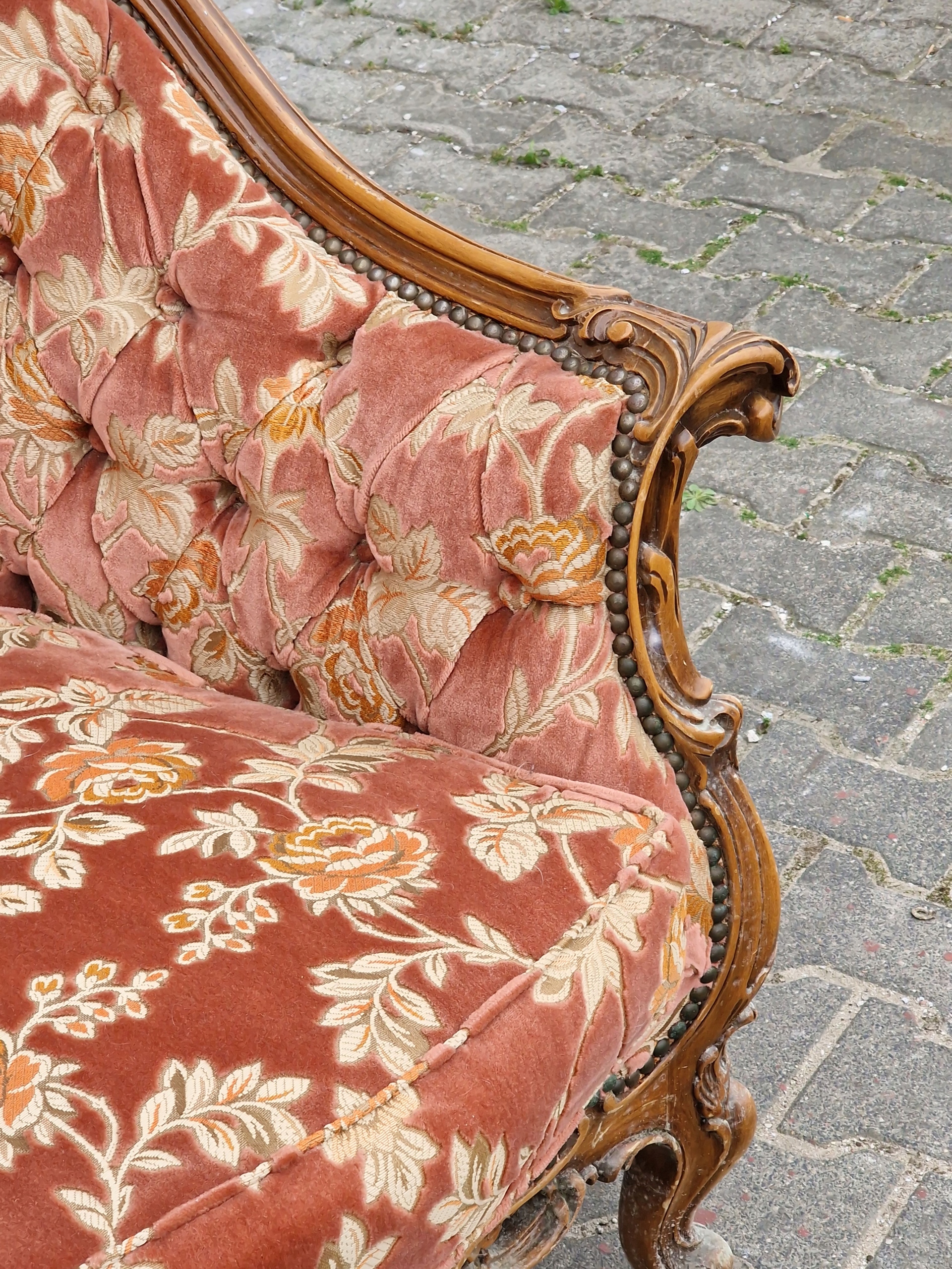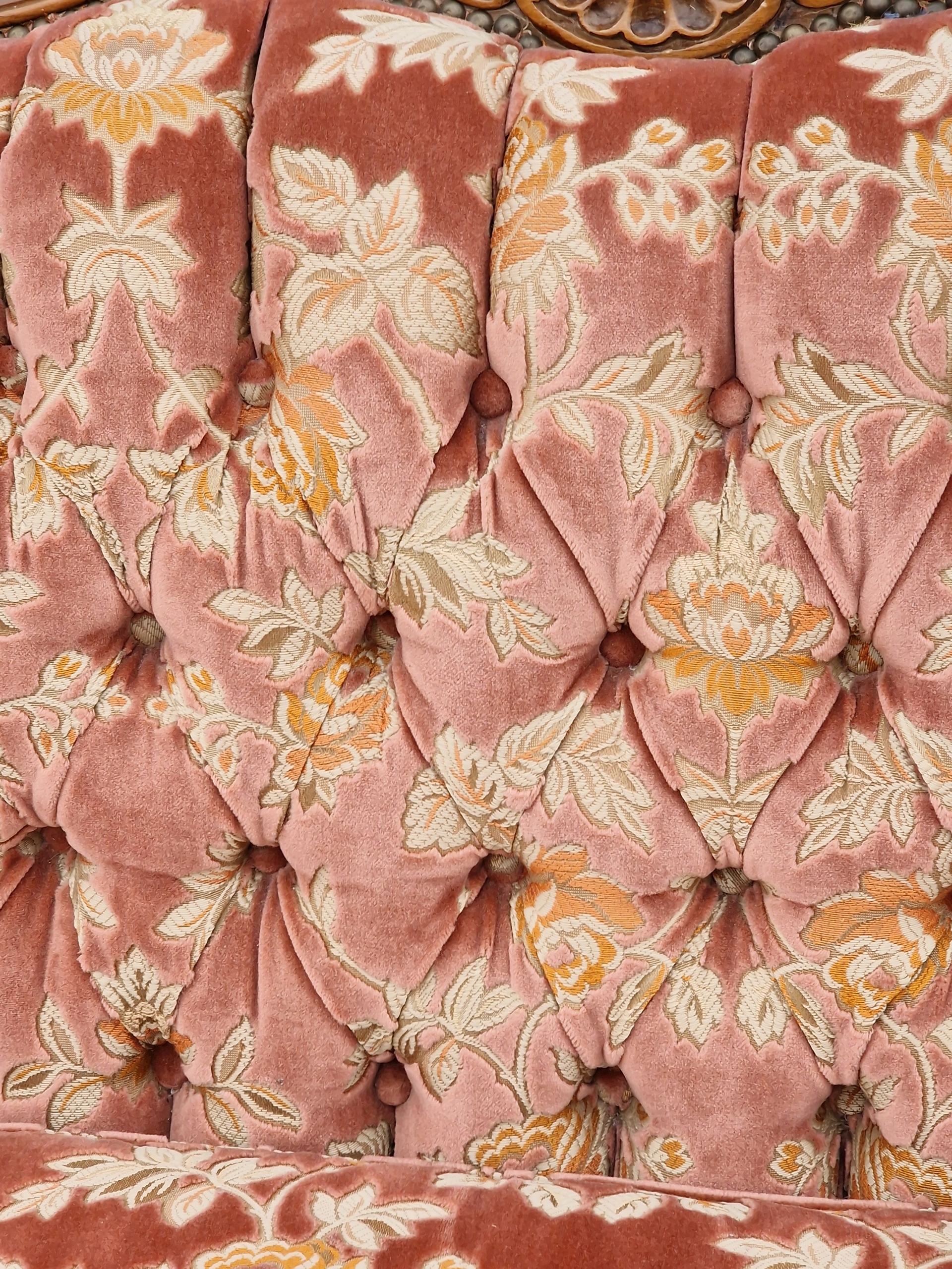 Цікаве, здорове дерево, структуроване оббивка - ворс коралового кольору з бежево-червоними мотивами (палацовий малюнок)