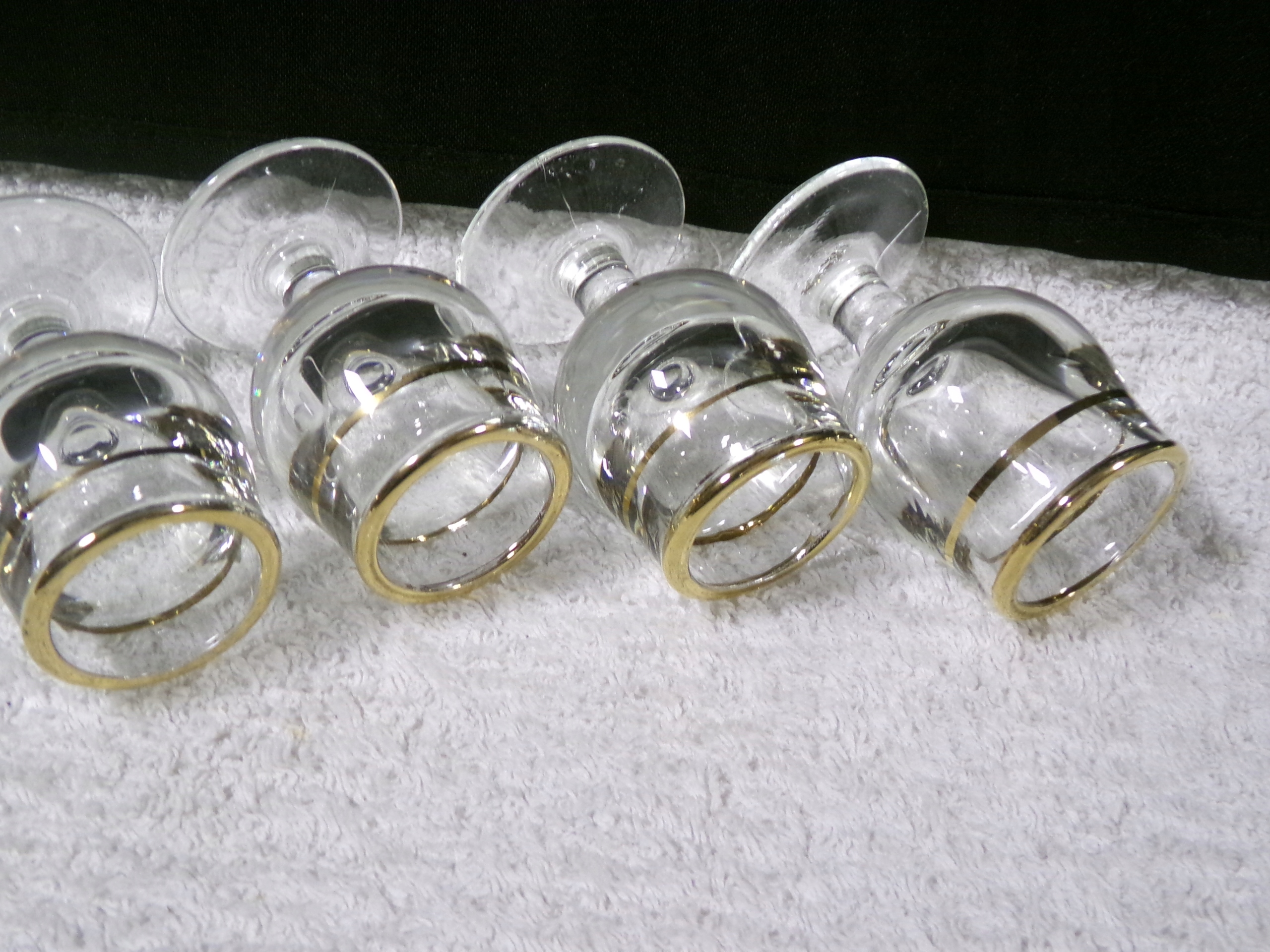 набір із 4 окулярів із золотою оболонкою заввишки 7 см, середній діаметр 3,2 см, ємність 30 мл, вагою 0,35 кг. Дуже хороший стан збережений, без пошкоджень.