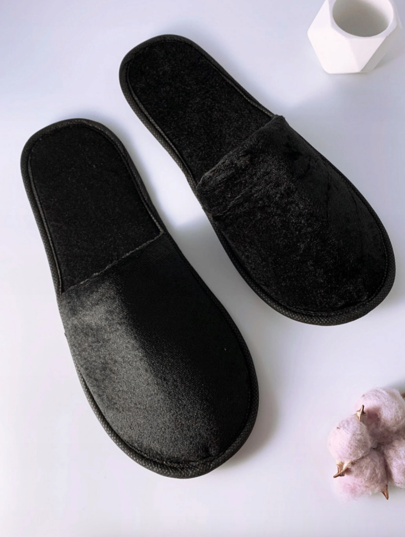 Виготовлені з оксамиту найвищої якості, наші тапочки огорнуть ноги ваших клієнтів теплом і задоволенням.