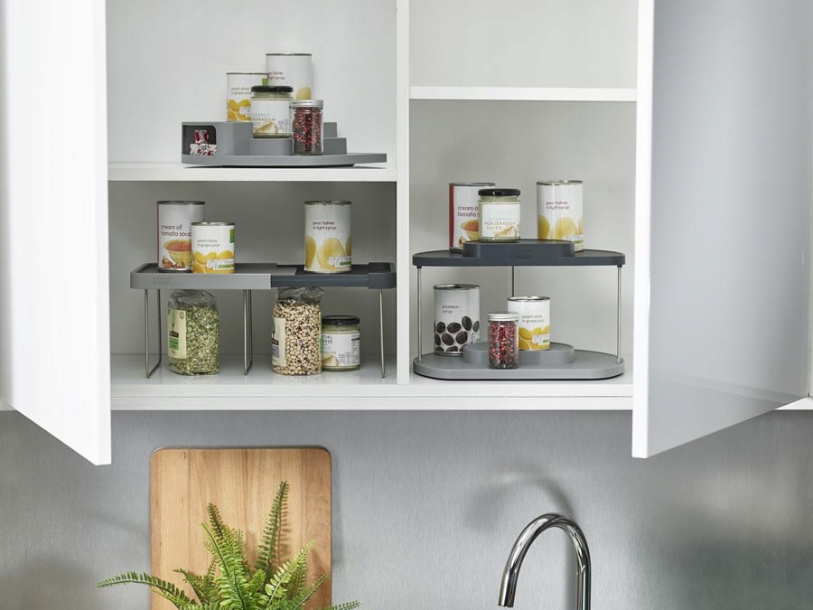 Полиця-органайзер CupboardStore Joseph Joseph була розроблена, щоб збільшити простір для зберігання в кухонних шафах або в коморі. Створює додатковий рівень для розміщення, наприклад, баночок із консервами чи банок.