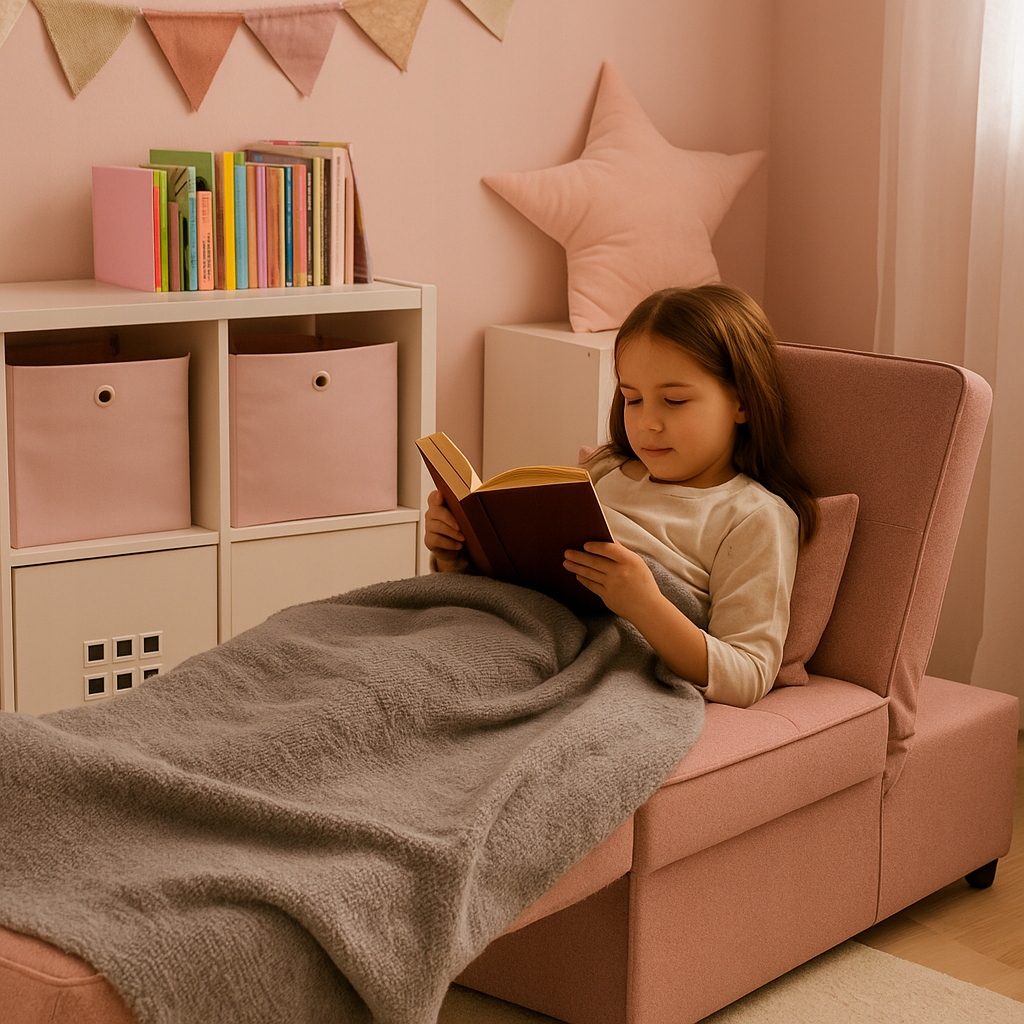 - У кімнаті для дівчинки - це може бути зручним місцем для читання казок, перегляду улюблених мультфільмів, гри на планшеті.