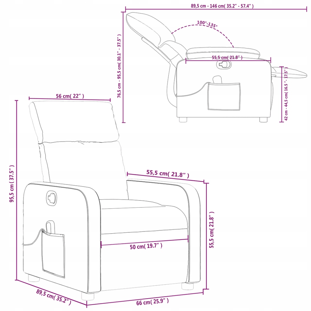 - Розміри в положенні лежачи: 66 x 146 x 76,5 см (ширина x глибина x висота)