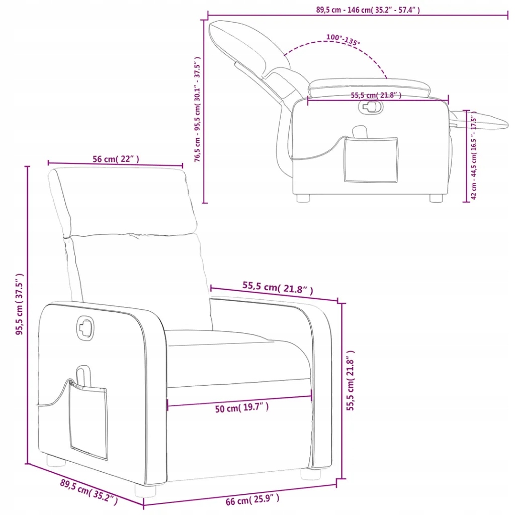 - Розміри в положенні лежачи: 66 x 146 x 76,5 см (Ш x Г x В)