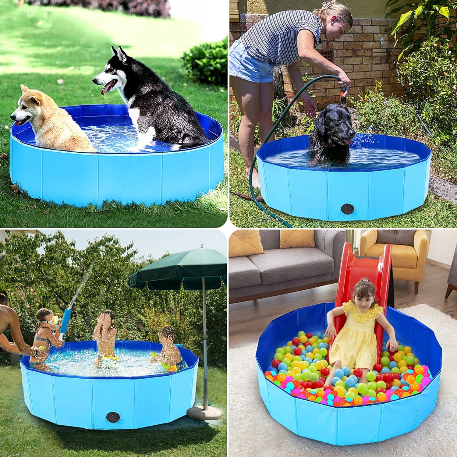 - Багатофункціональність - його також можна використовувати як дитячий басейн або дитячий басейн. Ваші діти можуть грати з собакою в басейні. Ви також можете помістити всередину багато речей, як-от воду, пісок, м’ячі тощо, насолоджуйтесь літніми розвагами!