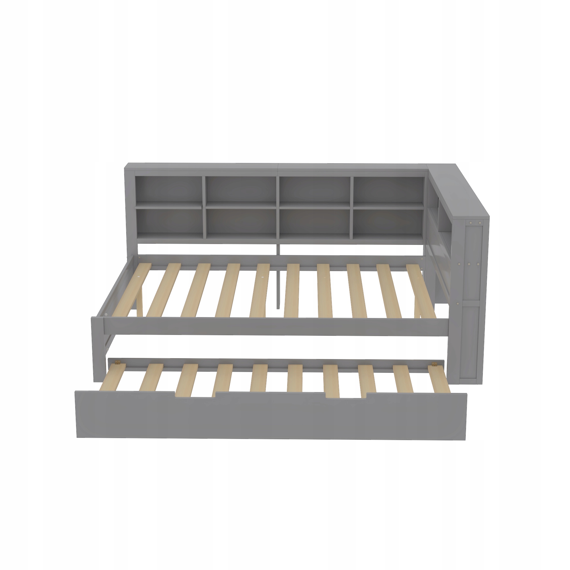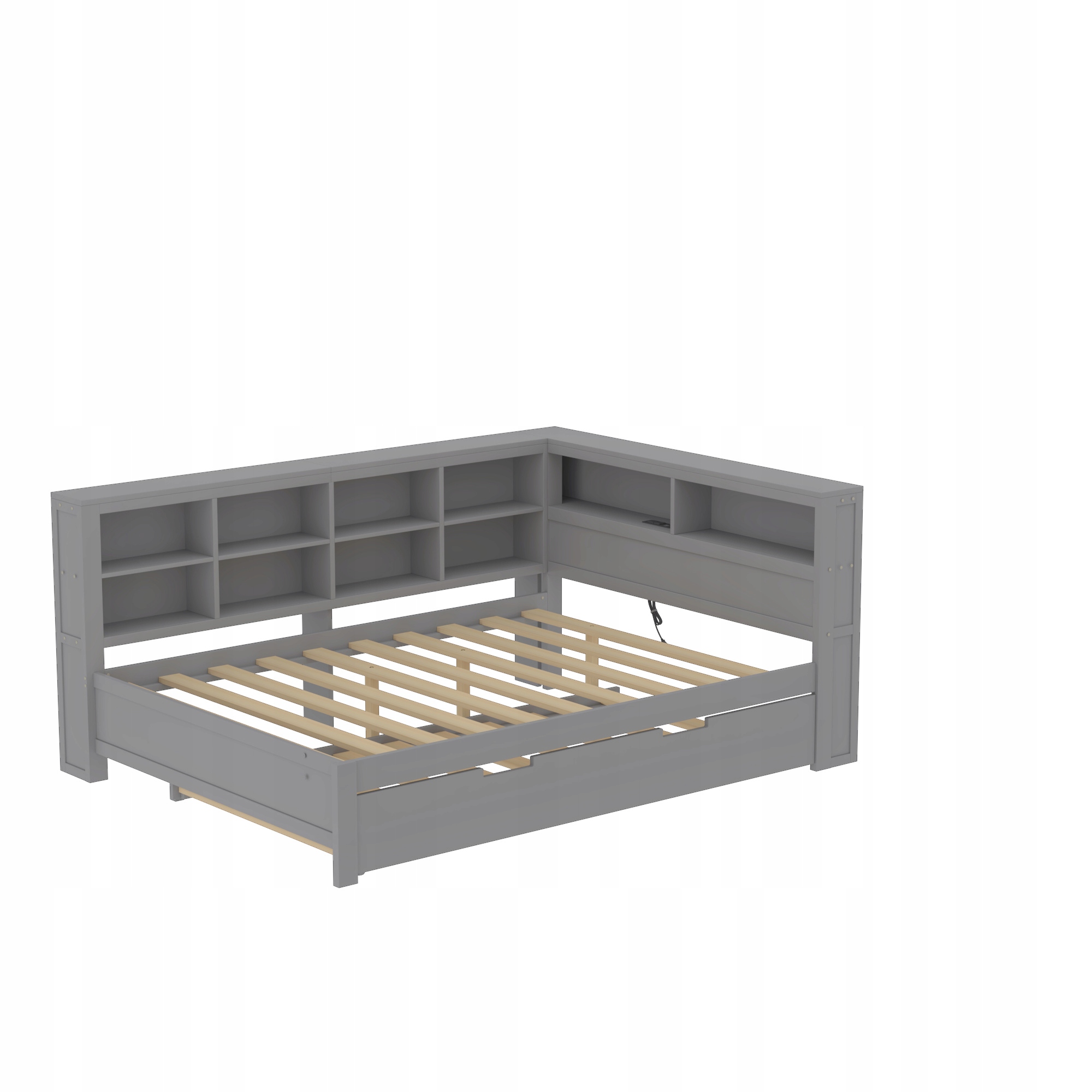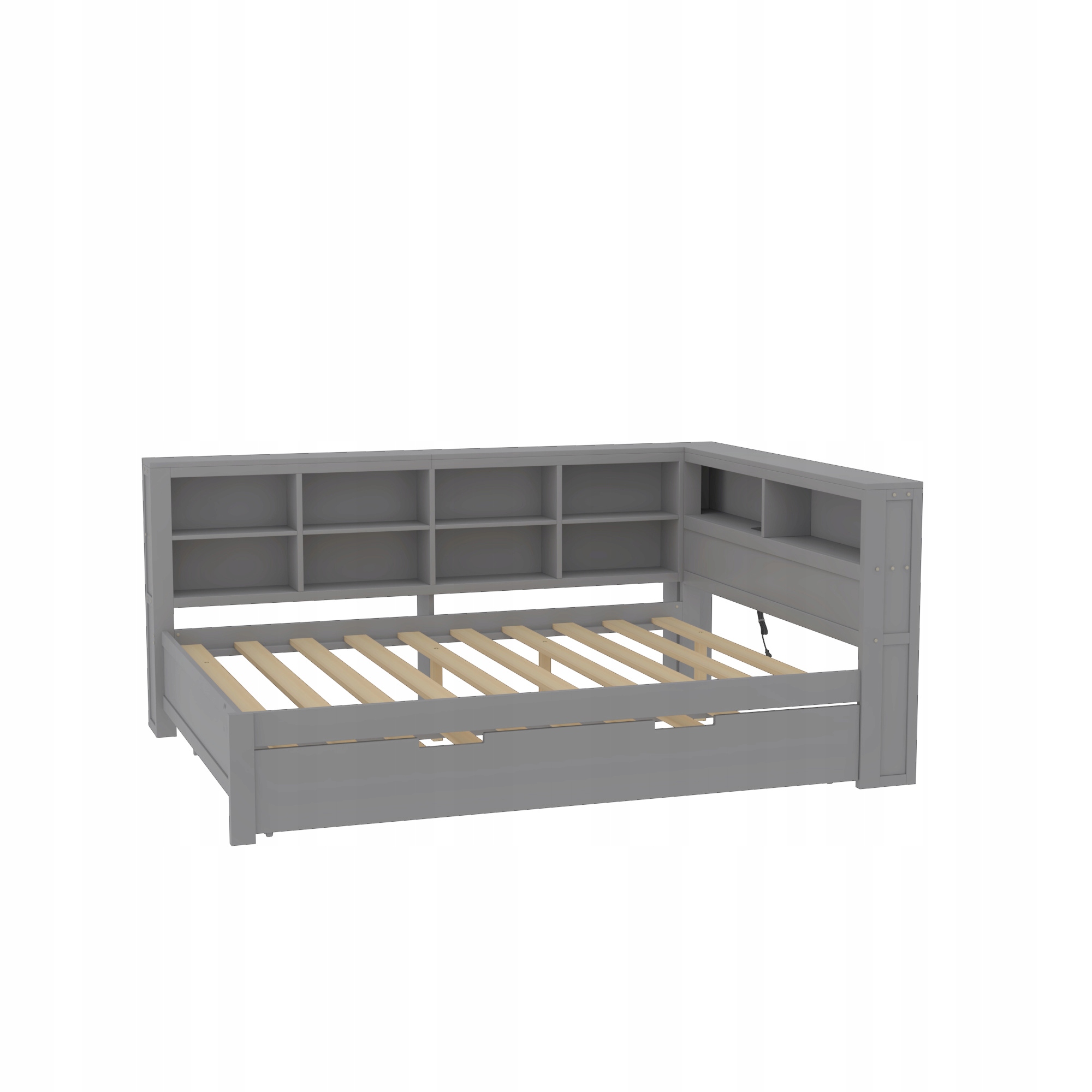 Диван-ліжко 140*200, розкладне ліжко 90*190 з USB роз'ємом і декількома відділеннями, ліжко з масиву, двоспальне ліжко, багатофункціональне ліжко з дерева, сірий.