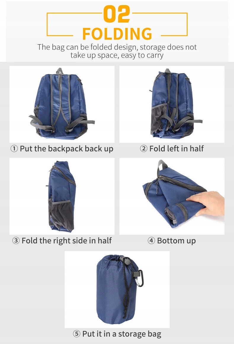 【світло і складання】 - цей рюкзак важить лише 0,35 фунта, Половина ваги звичайного туристичного рюкзака надзвичайно легка. Складений до розміру руки, він навіть вписується в кишеню, завдяки якому легко переносити.