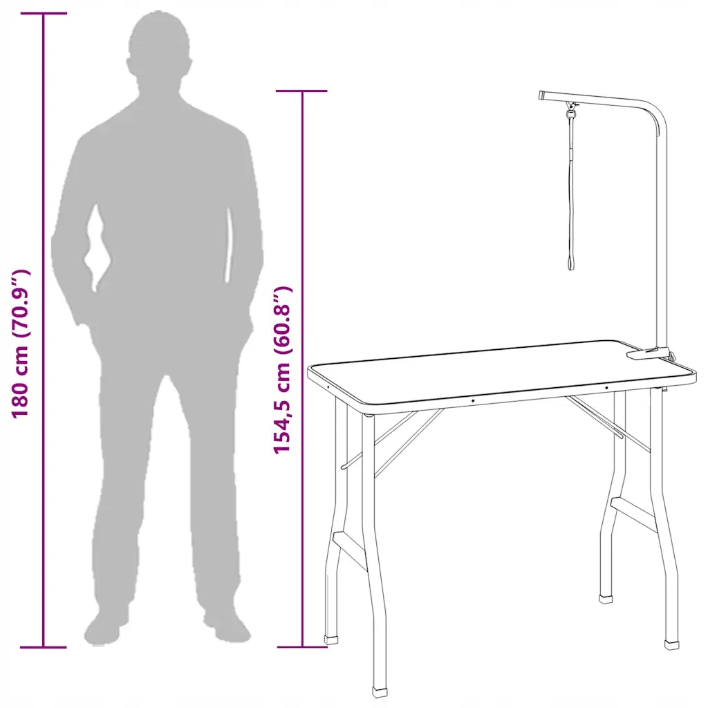 Складний грумінговий стіл чорний 97 x 61 x 154,5 см з регульованою рукою