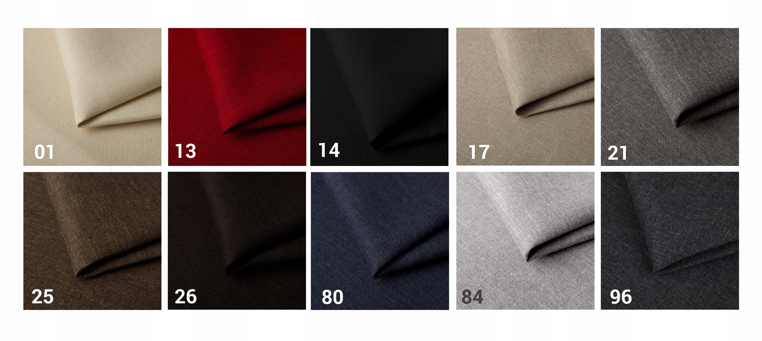 Matt Velvet – плюшева тканина з матовою структурою з непомітним переплетення ниток, з красивою обробкою. Має структуру тонкого, слизького пуху, на ньому легко писати. Він дуже приємний на дотик і має високу стійкість до стирання. Це водонепроникна тканина з ВОДООТШЛІКУЮЧИМ покриттям, що ускладнює вбирання рідини. Тканина покрита спеціальним захисним шаром, який створює гідрофобне покриття, що запобігає швидкому проникненню рідини. Це запобігає миттєвому вбиранню води тканиною, що призводить до конденсації рідини на поверхні матеріалу. Це дає нам час, щоб обережно видалити розлиту рідину за допомогою м’якої тканини або паперового рушника. Тканина чудово підійде до будь-якого типу м'яких меблів. Очищайте лише м’якими засобами для догляду за м’якими меблями. Не прати, не прасувати та не відбілювати.