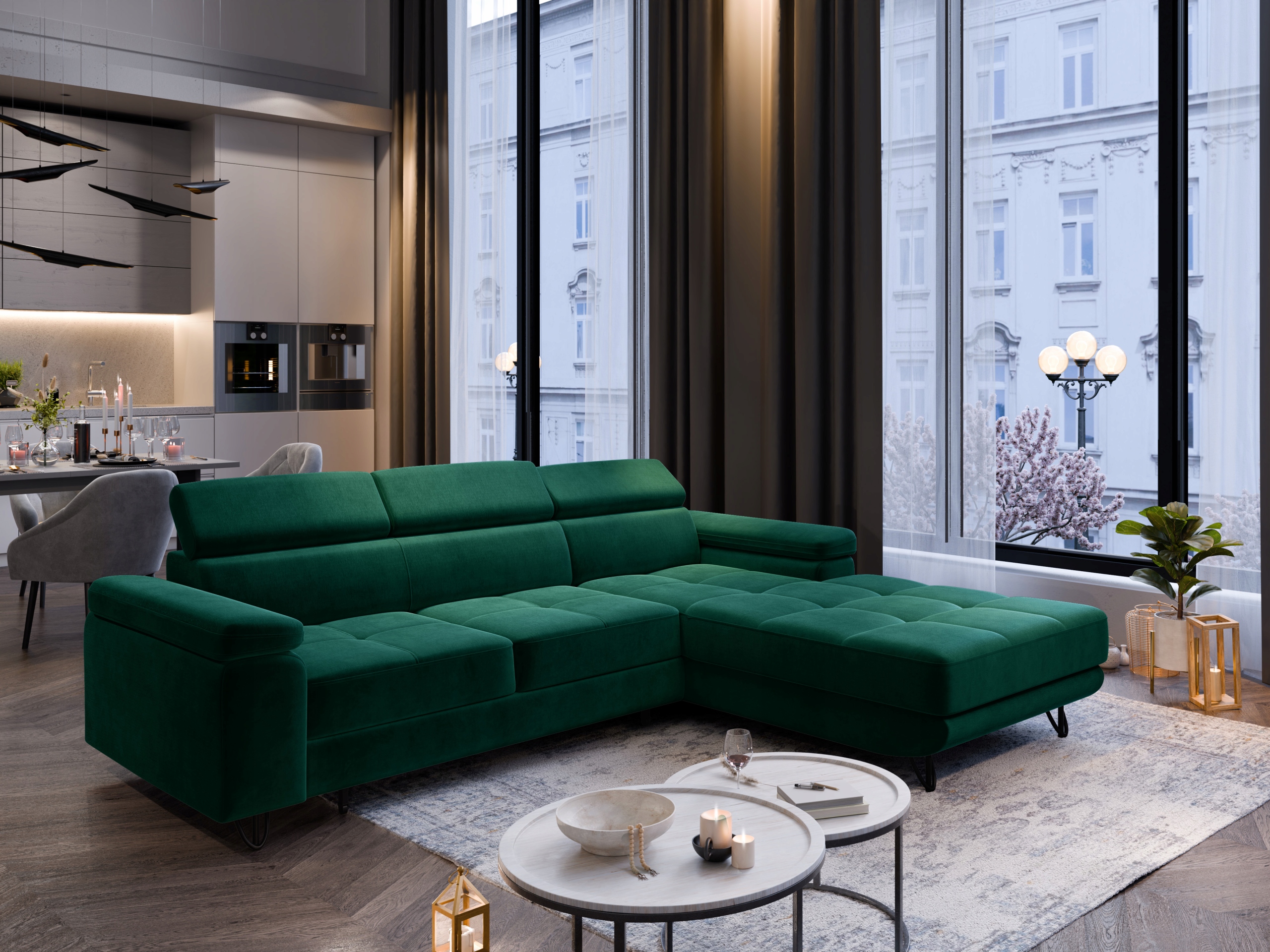 Розкладний кутовий диван NORIS Функція сну Регульовані підголівники