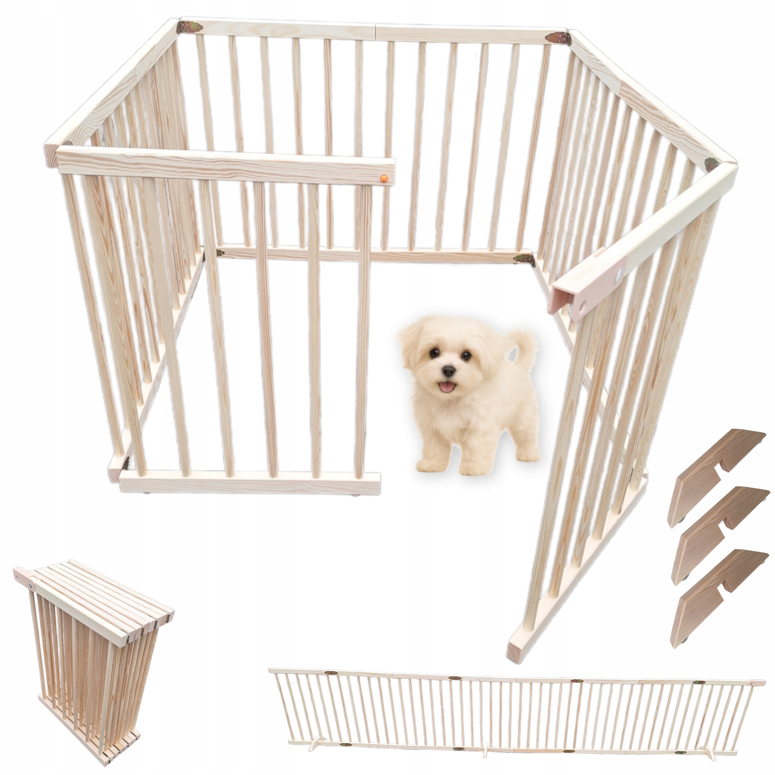 СКЛАДНИЙ манеж для собак для дому 2в1 – ДЕРЕВ'ЯНА огорожа 360 см, Дрібні породи