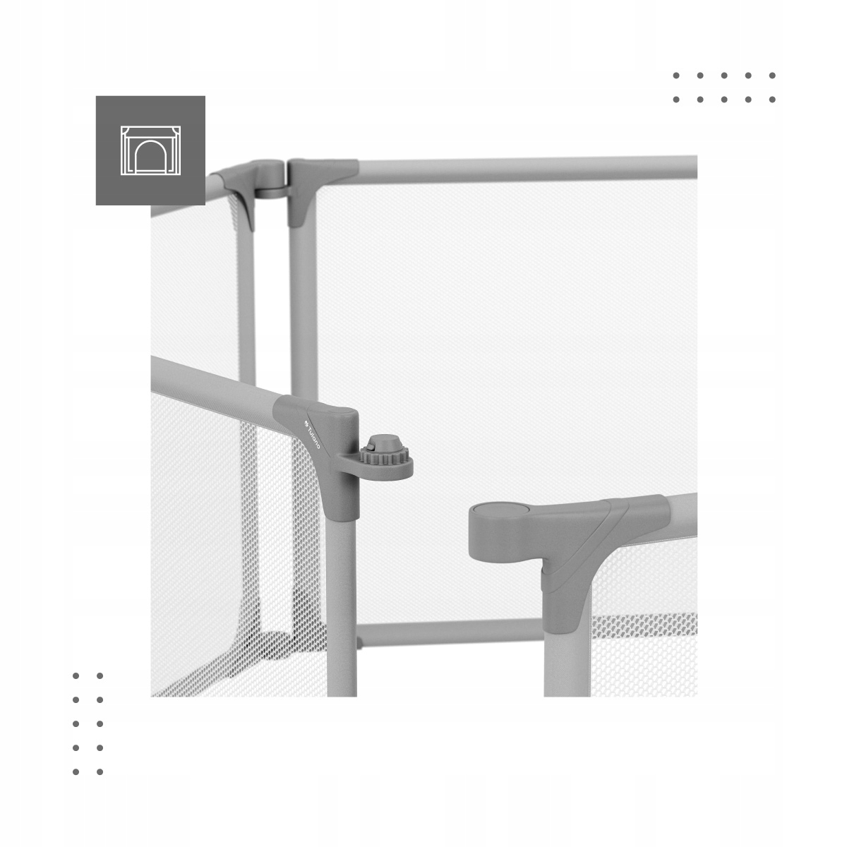 Завдяки продуманій конструкції кожну панель можна використовувати як двері. Зручне відкривання за допомогою кнопки полегшує вхід і вихід, не даючи дітям можливості відкрити манеж.