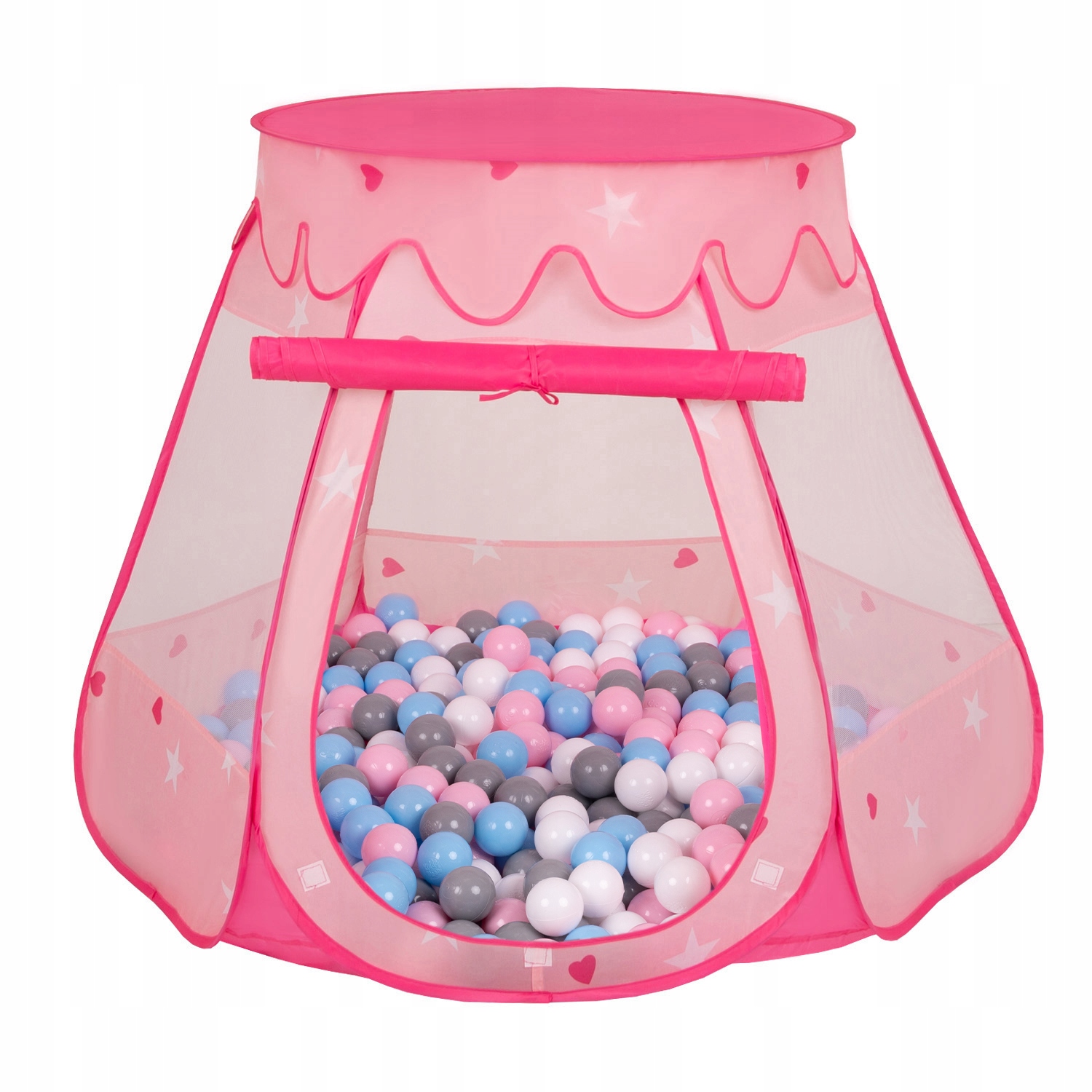 NZ-100X-76-РОЖЕВИЙ Намет Selonis Castle NZ-100X з кульками 6см рожевий: біло-сірий-бебіблакитно-рожевий 105x90см/200 кульок Іграшковий намет для дітей