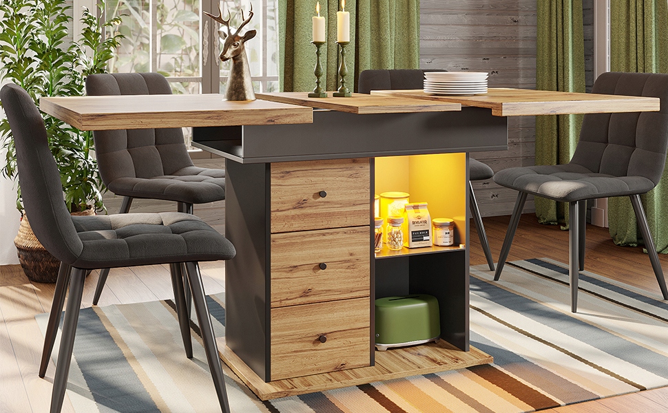 Телескопічний обідній стіл (110-140×80 см), розкладний кухонний стіл на 4-6 осіб, розсувний обідній стіл, компактний кухонний стіл, для кухні та вітальні, стіл зі світлодіодним підсвічуванням