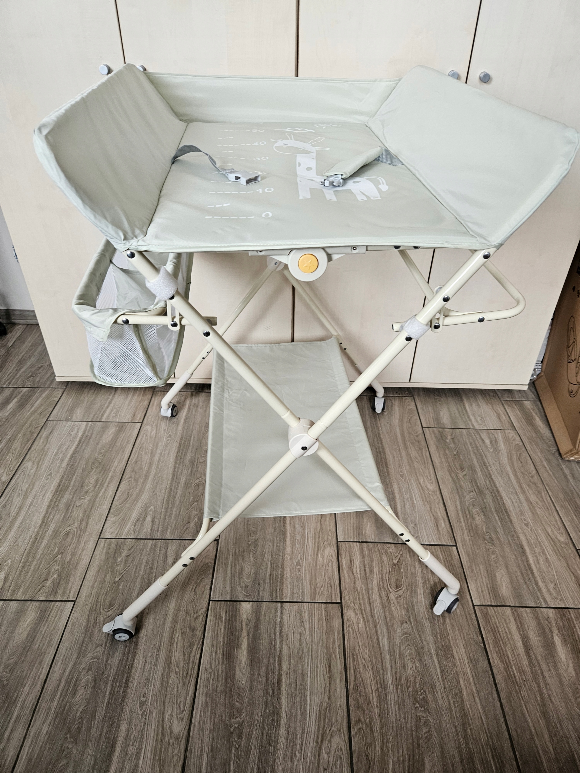 "Змінювальна таблиця BDMU Giraffe - це складний таблиця розкладених для немовлят, який спрямований на полегшення догляду за дітьми в домашніх умовах. Це портативна модель з підставкою, яка може бути складена, що дозволяє заощадити простір. У верхній частині є м'яка таблиця, що змінюється, часто з ременями безпеки, щоб забезпечити стабільність. H2>>