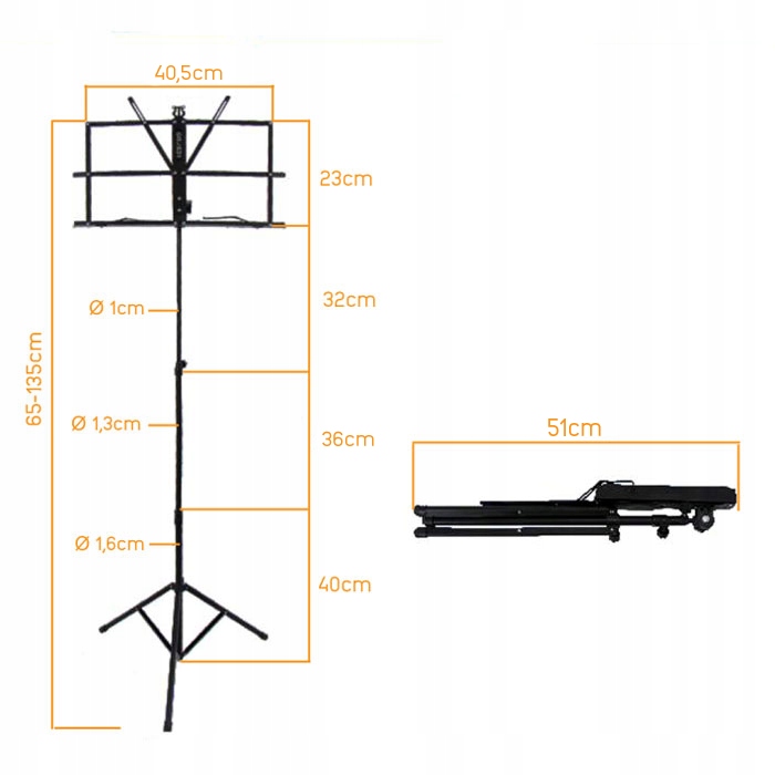 Професійний пюпітр на металевому штативі з плавним регулюванням висоти в діапазоні 65-135 см і складаний пюпітр є обов’язковим елементом обладнання як для початківців, так і для досвідчених музикантів.