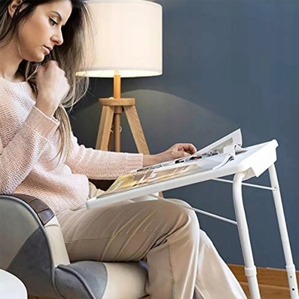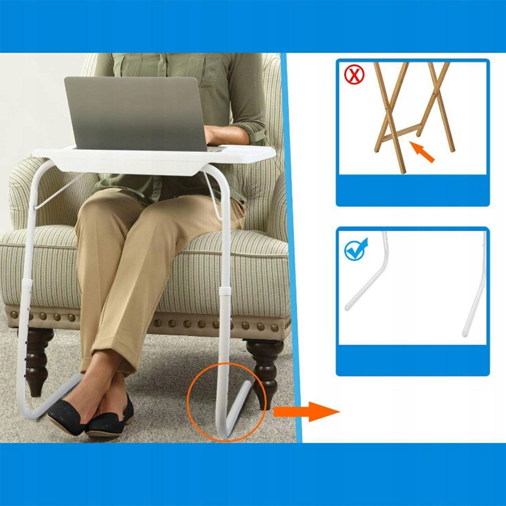 Наш складаний стіл повністю регулюється до 6 різних висот і 3 різних кутів. Незалежно від того, дитина ви, дорослий чи літня людина, знайдіть найзручніше положення для роботи чи їжі, не напружуючи шию чи спину.