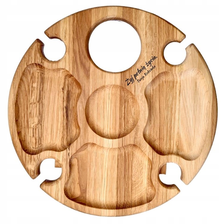 Вино-закусочний стіл з натурального дуба, який можна взяти з собою. Стіл мобільний, його можна поставити біля обіднього столу, на диван у вітальні, на підлогу біля каміна або в спальні на ліжко. Його можна використовувати як прикрасу, винну стійку або піднос для закусок. Виріб практичний і універсальний, завдяки наявності відкидних ніжок стіл можна використовувати як піднос. . Вишукана подача вина та закусок.